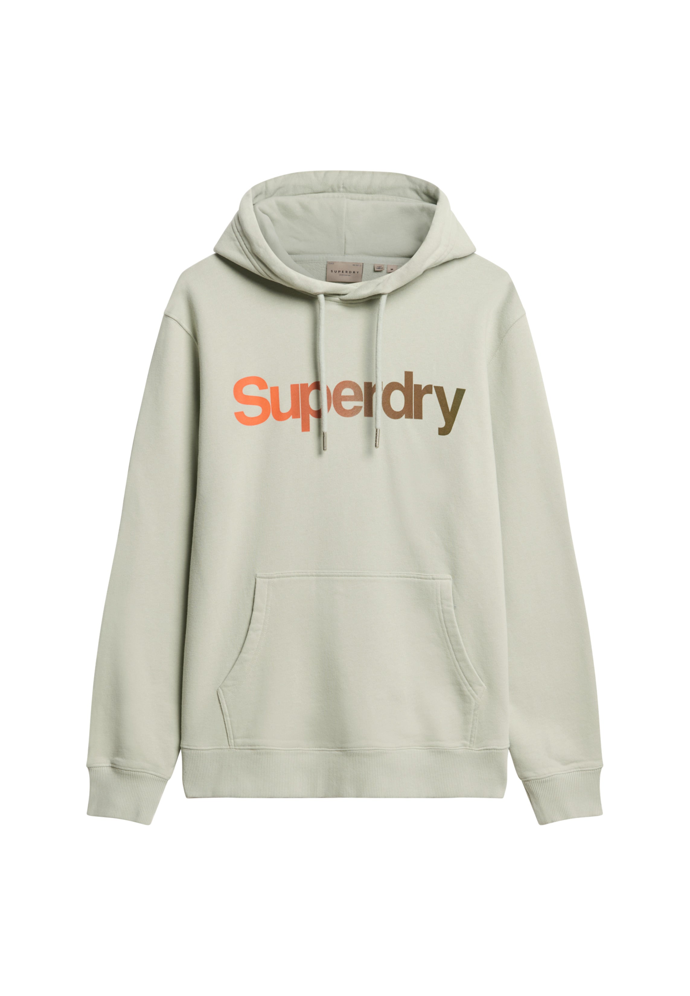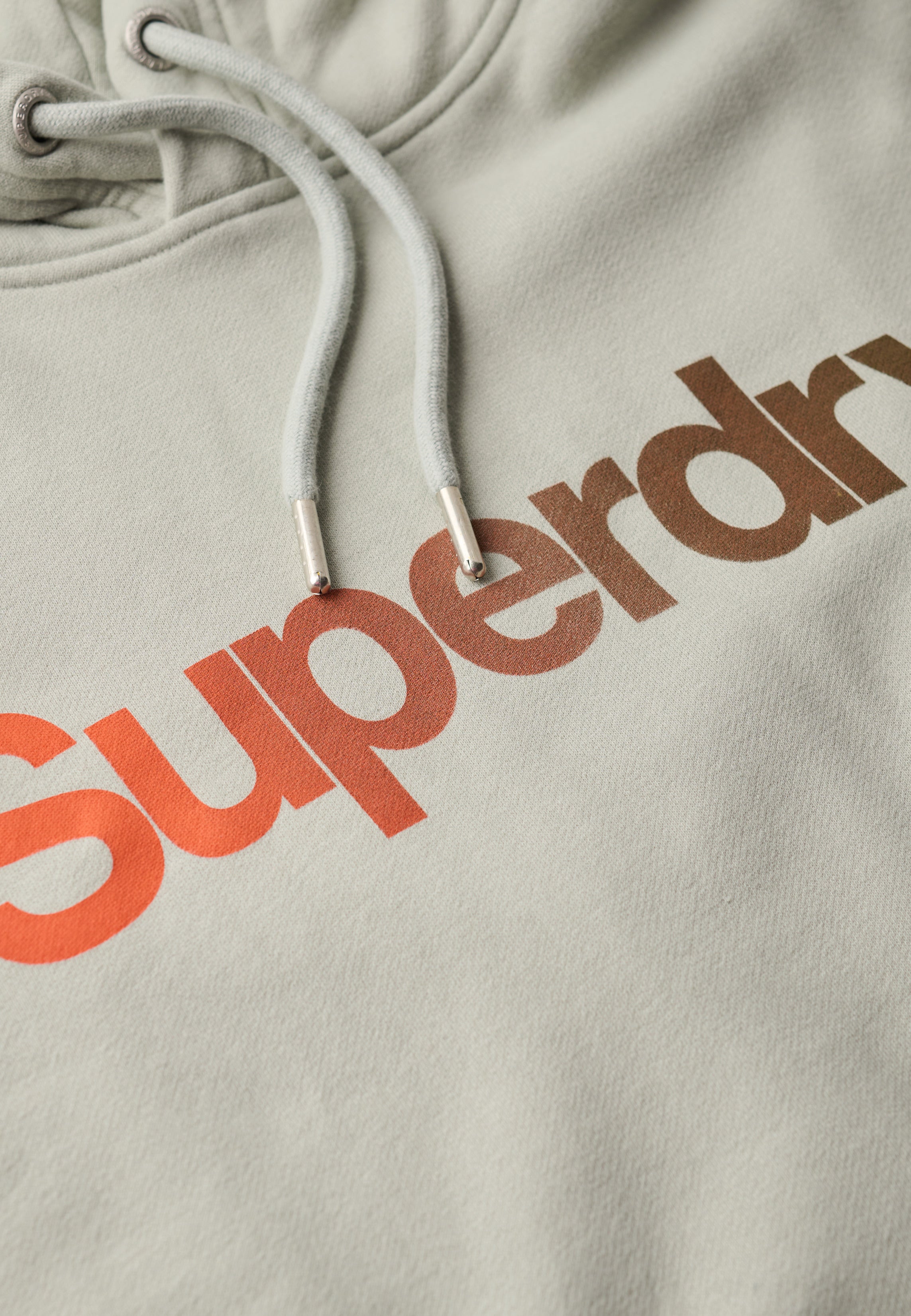 Essential overhead hoodie with colour-fade logo — your soft, brushed go-to for off-duty layering.