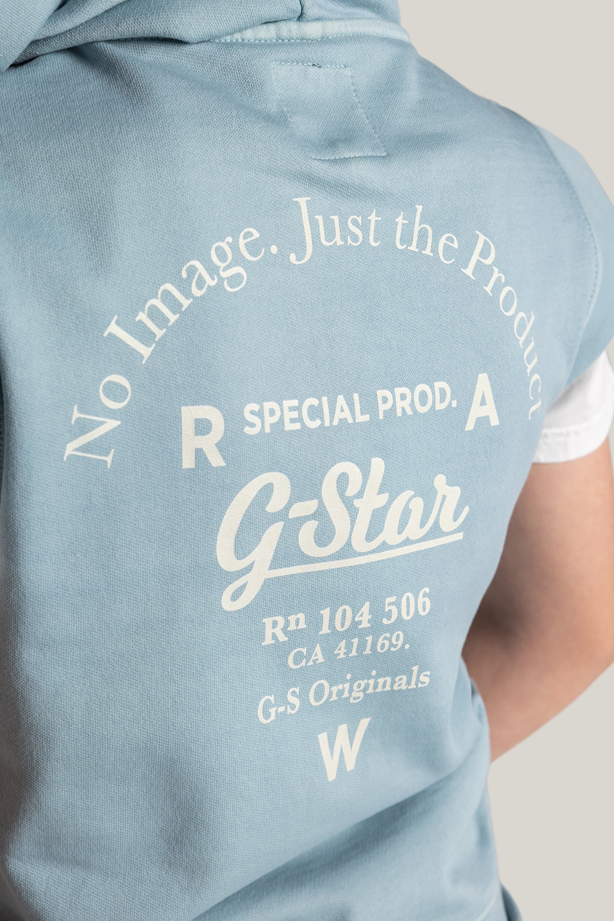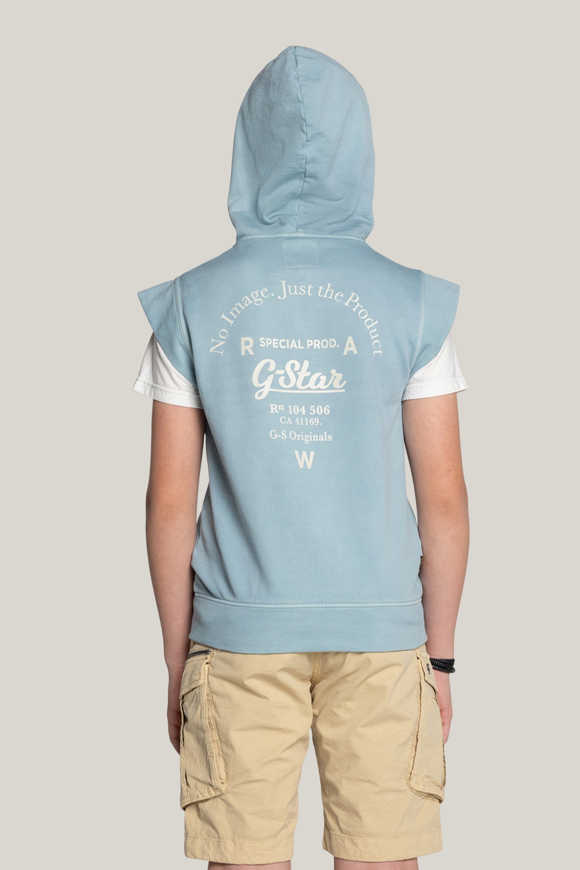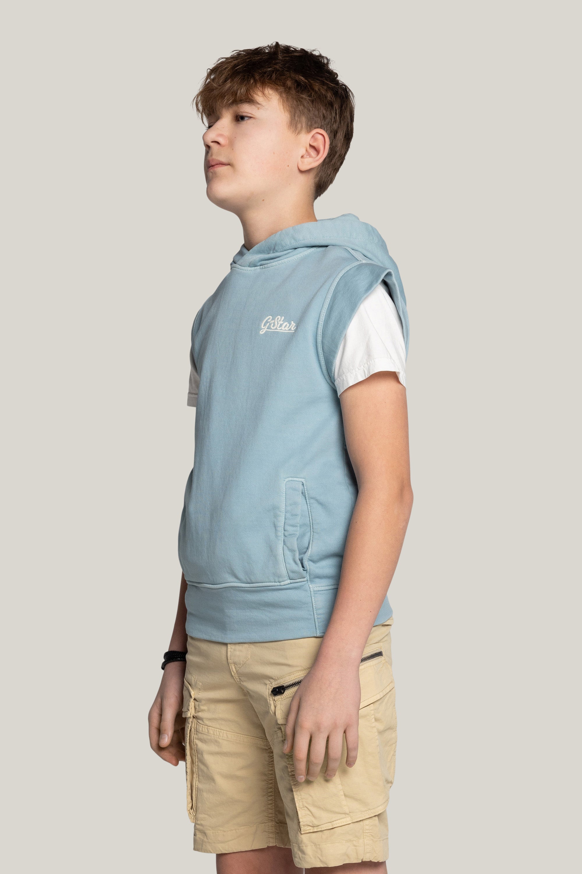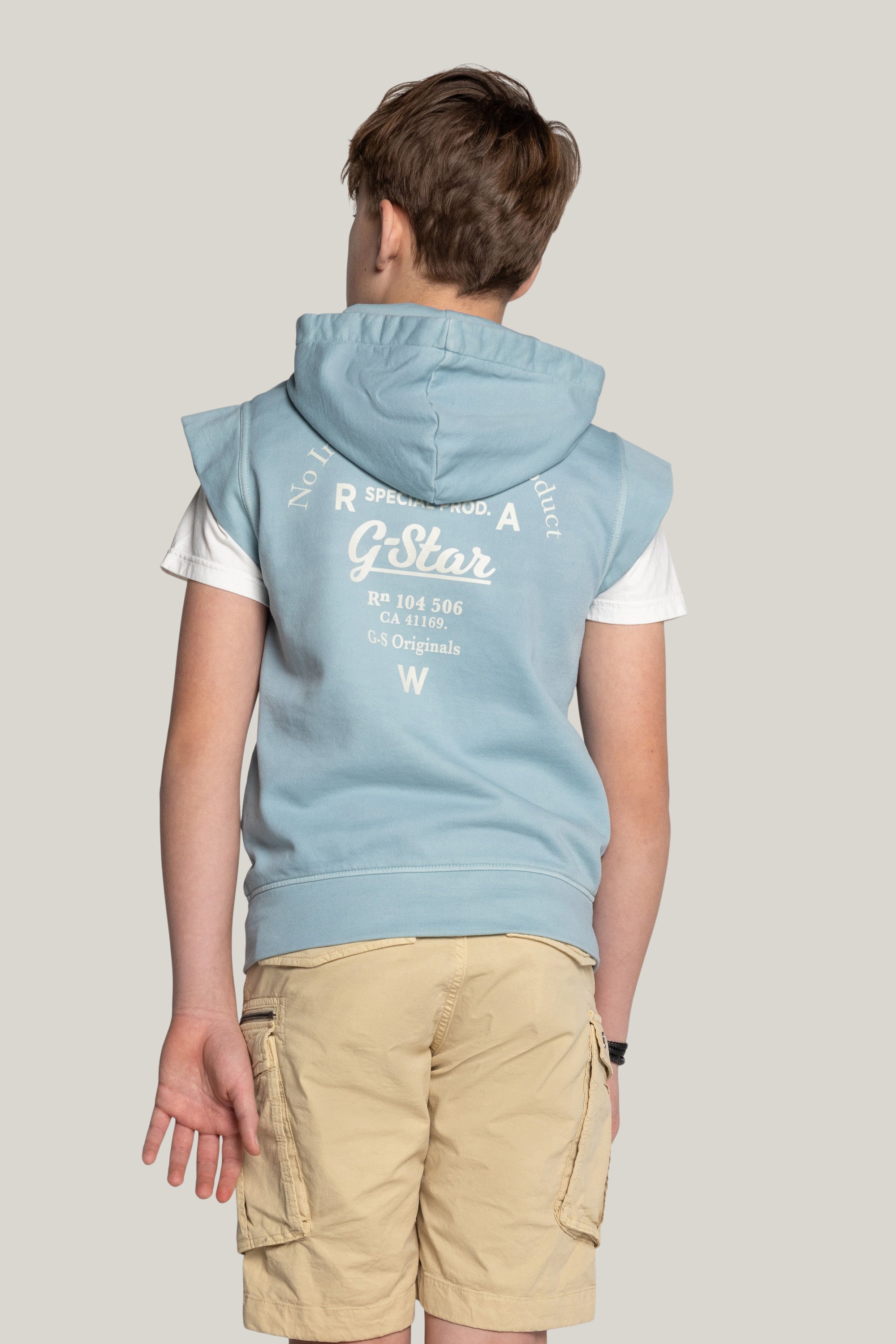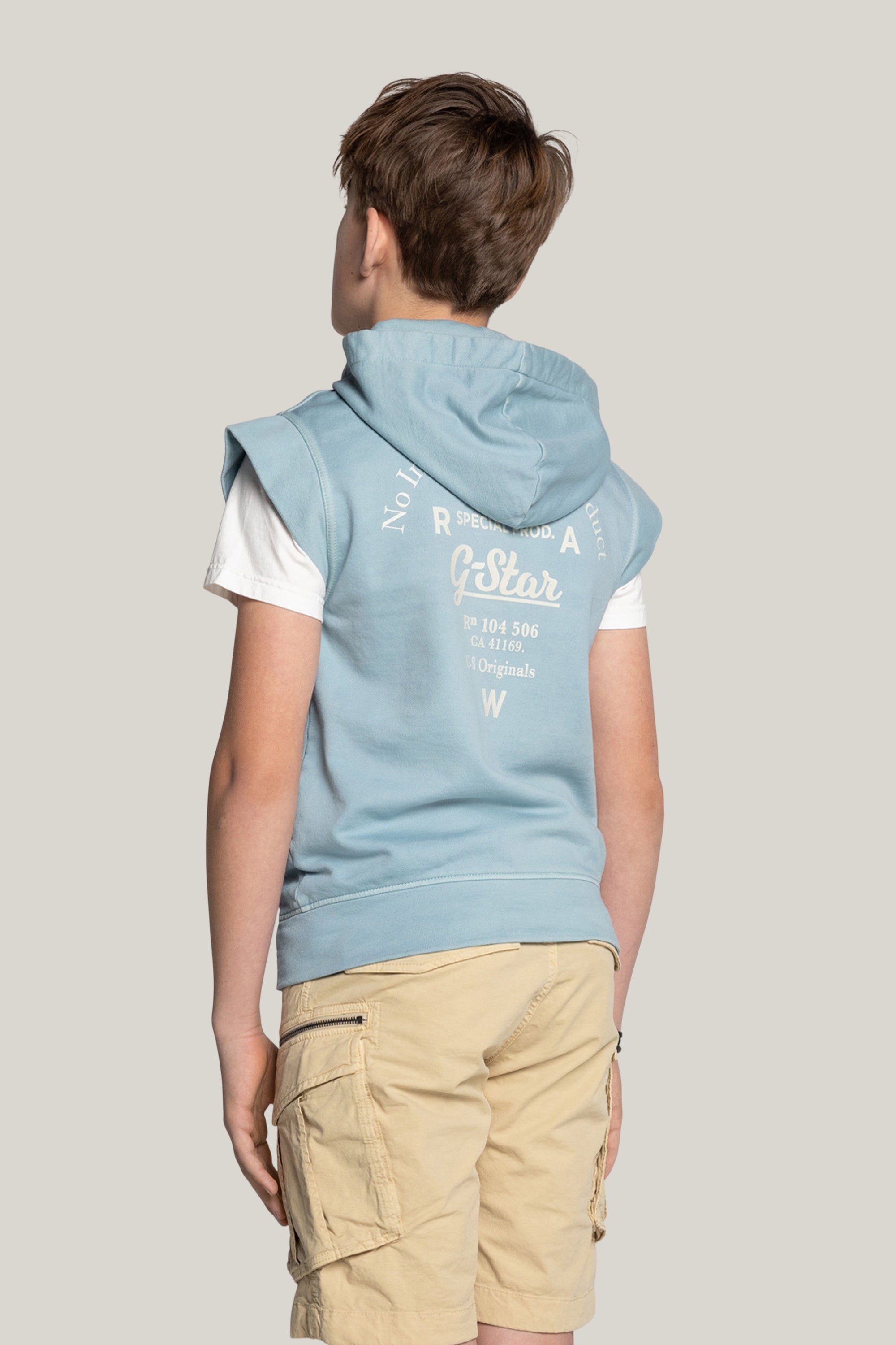 Le sweat à capuche sans manches non brossé pour enfant présente une coupe classique et une poche kangourou pour plus de confort. Un imprimé graphique audacieux au dos et une petite broderie sur le devant confèrent à ce sweat à capuche sans manches un look élégant et unique.