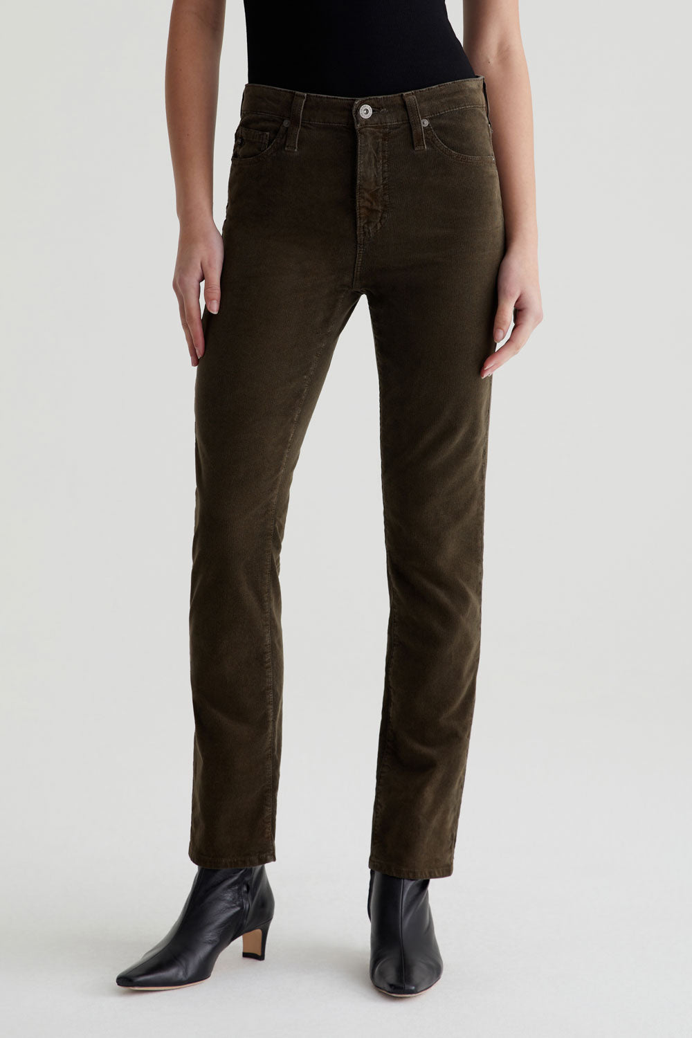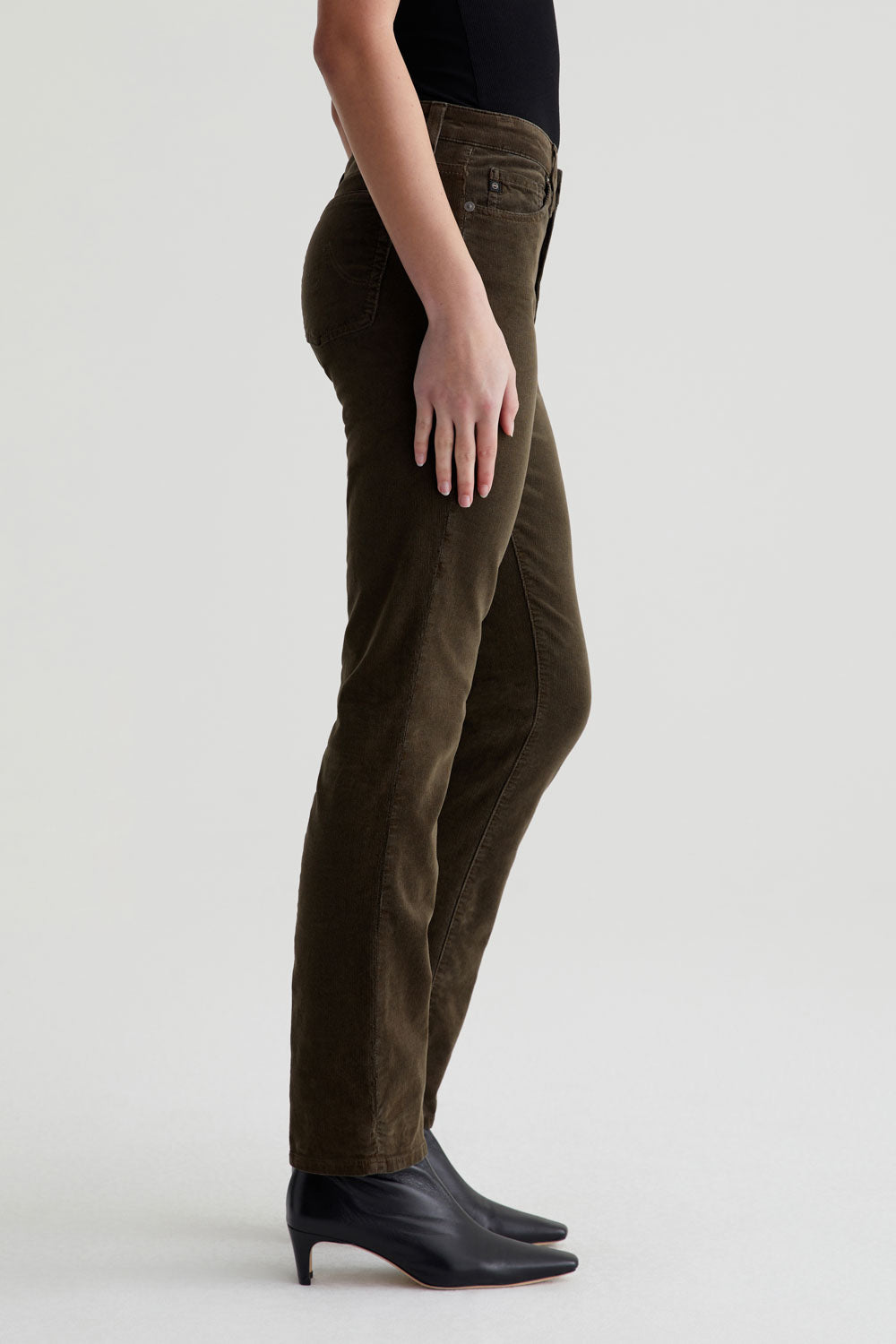 Mari is a mid-rise slim-straight silhouette, done here in 8.3 oz. Novel Stretch Mini Corduroy. It's got a soft, plush texture and a rich brown shade. Mari offers a flattering mid-rise waist and fits easy around the hips, finished with a straight leg and subtle slim leg opening.