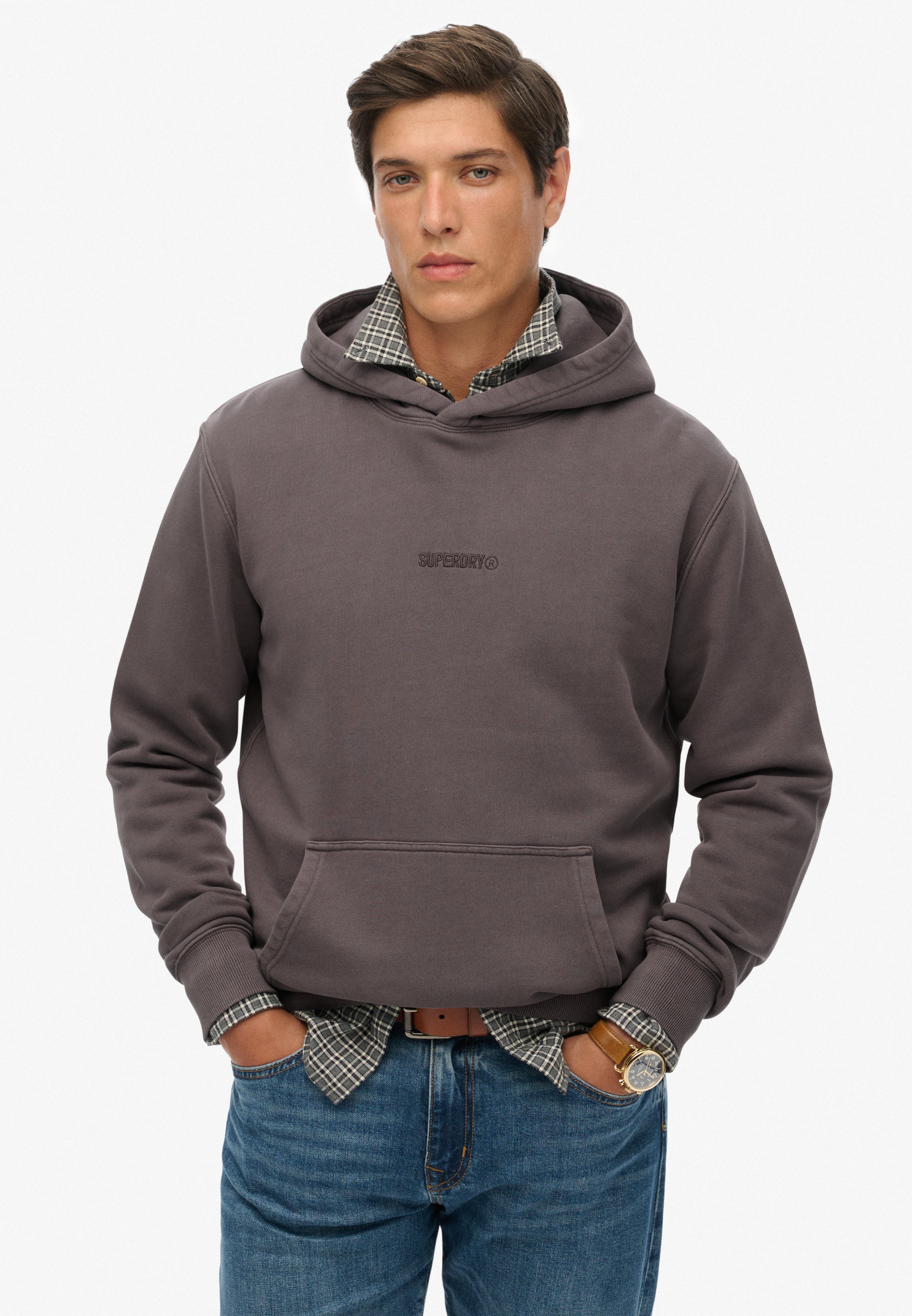 An everyday classic with quiet branding — delicately embroidered text at the chest and a comfy brushed lining.
