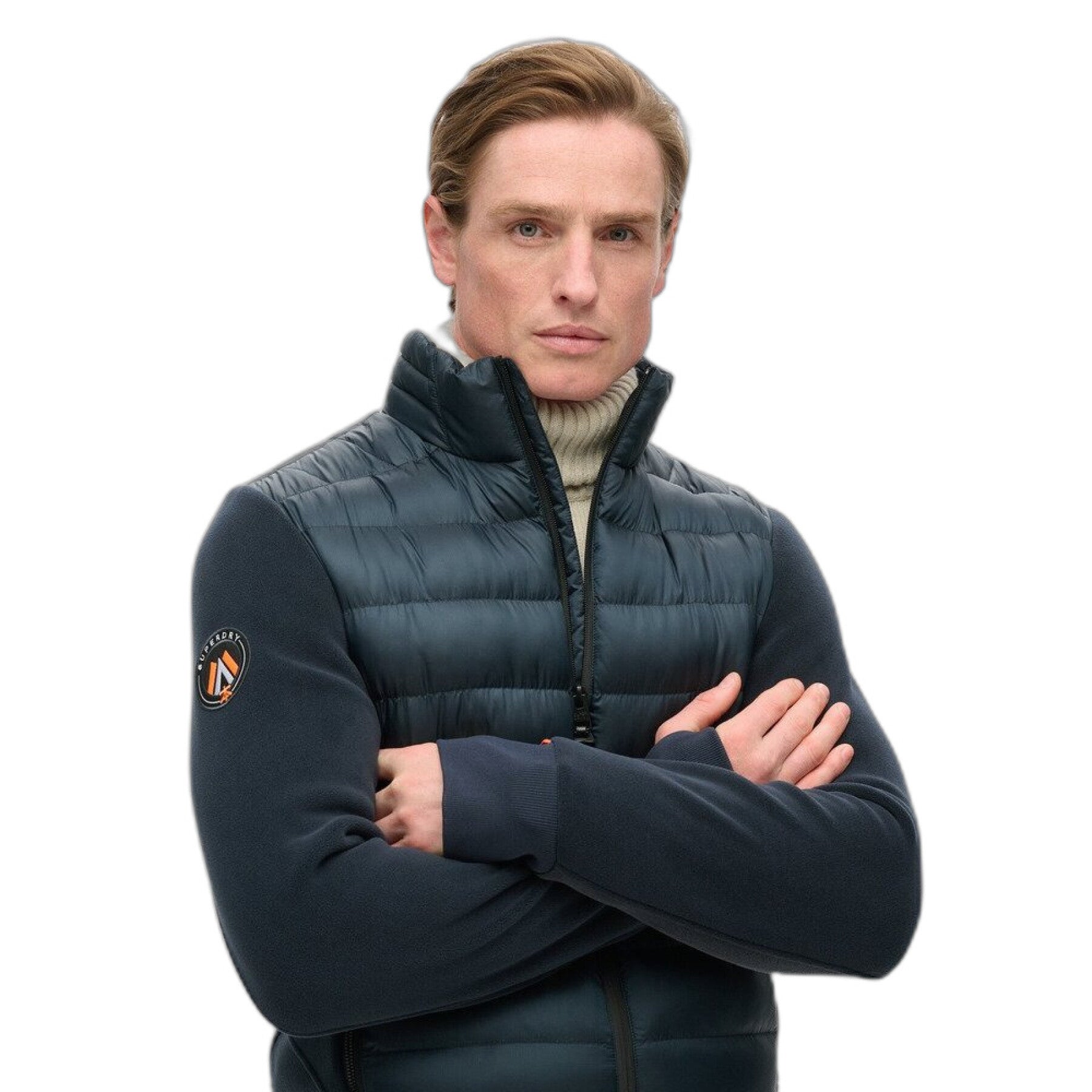 Slim fit – a slim-fitting design for a tailored look. Hybrid design of quilted and fleece fabric. Quilted front and shoulder panels. Fleece sleeves and back. Zip fastening with lining. High quilted collar with ribbed lining. Two pockets with zip closures. Ribbed cuffs with thumbholes. Partially ribbed hem. Inner mesh pocket. Brand logo plaque on sleeve. Embroidered logo on back.