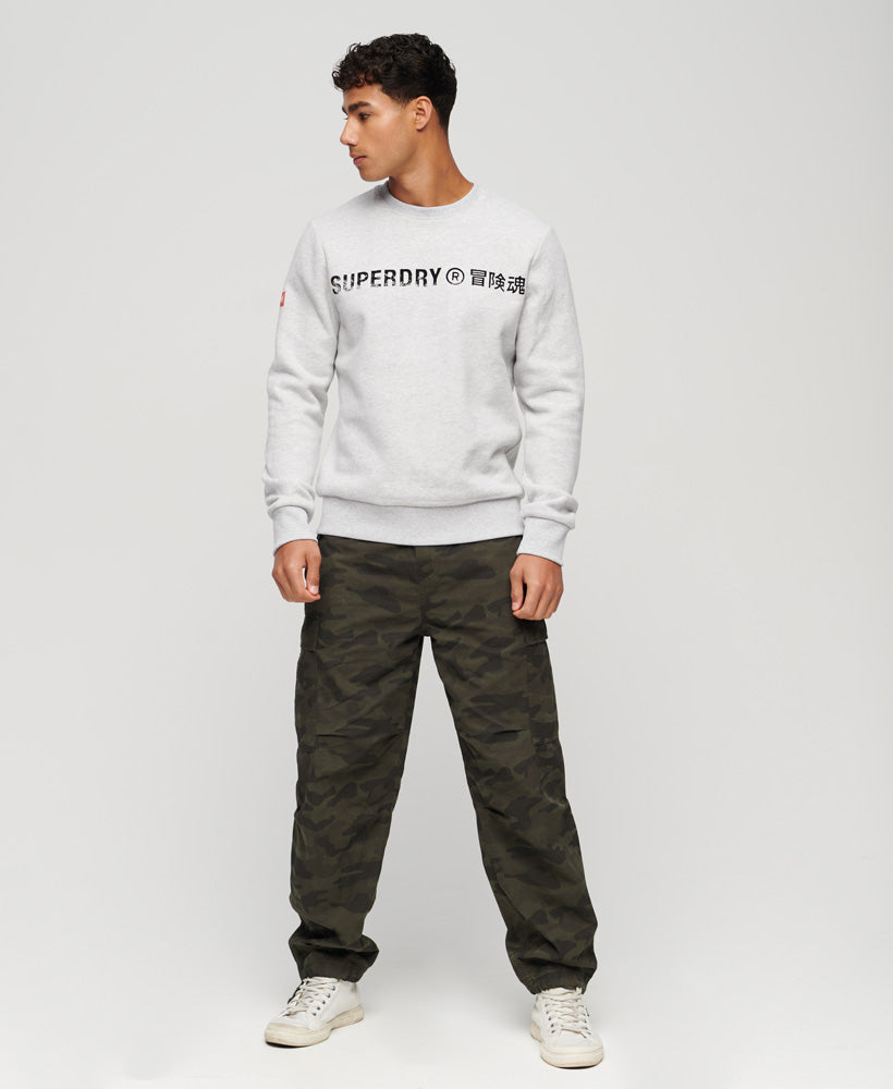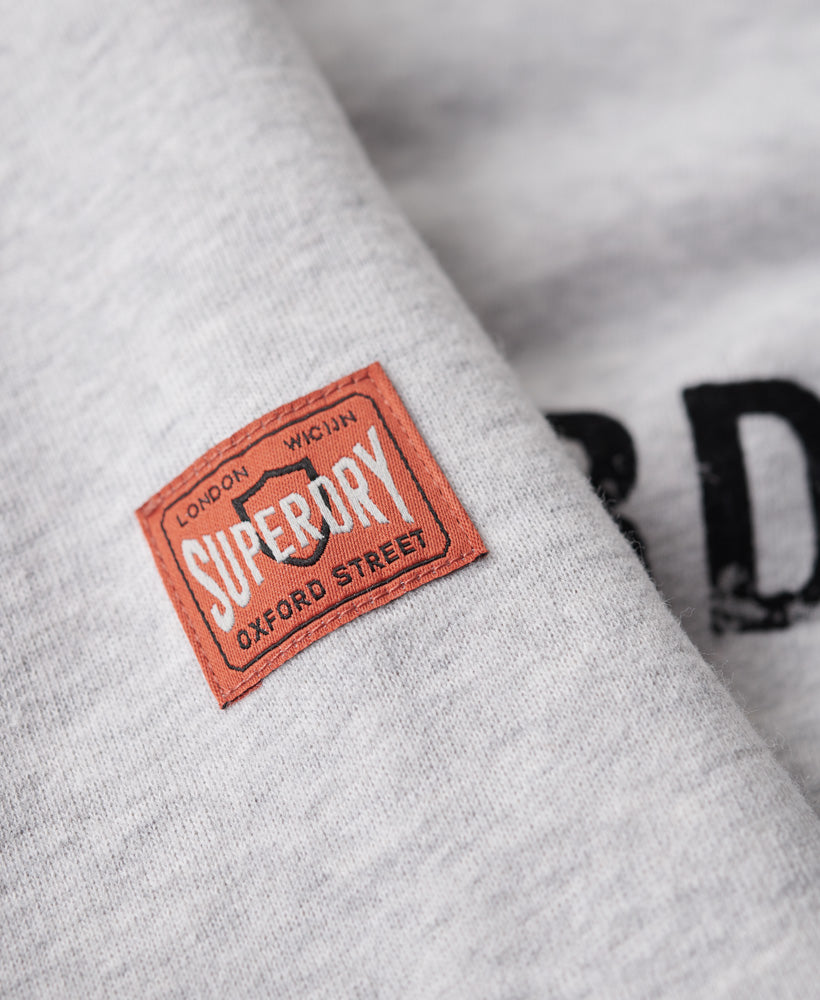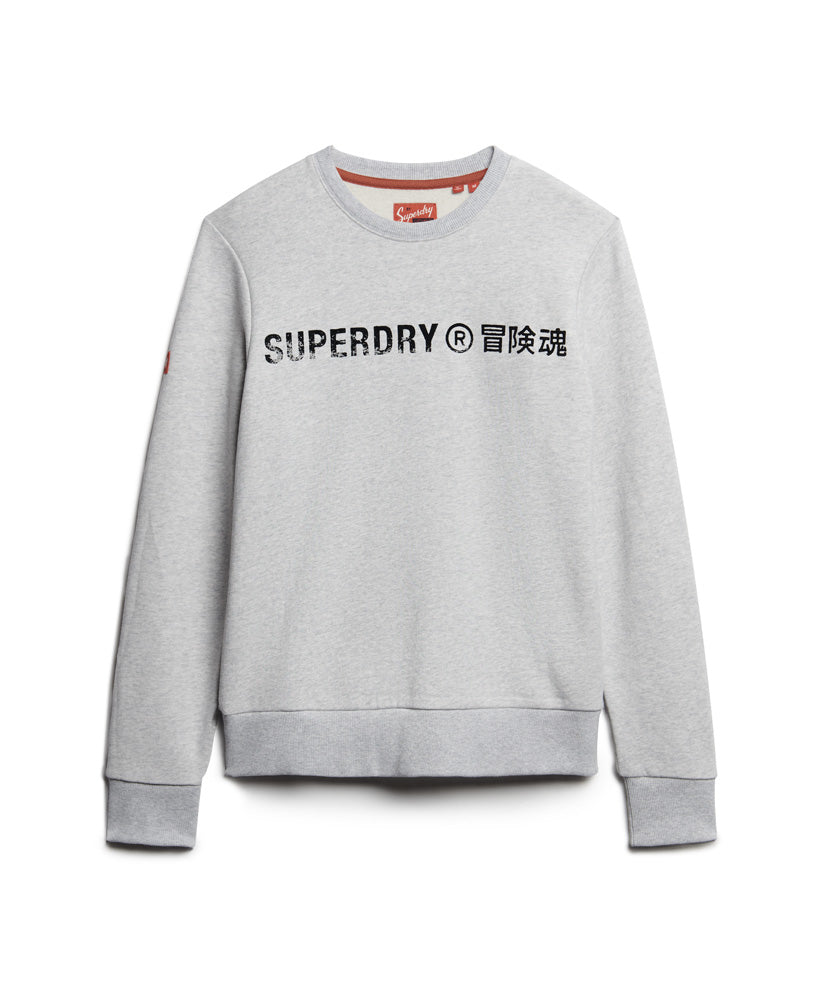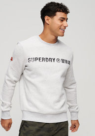 Sometimes simplicity is key. Classic crew with a distressed logo for easy styling and layering.