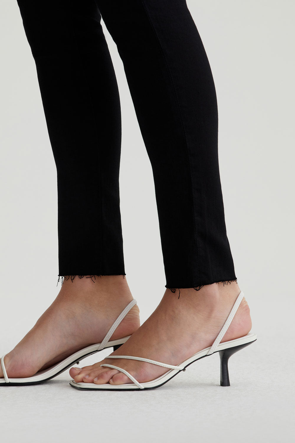 The Farrah Skinny Ankle for women features a mid-rise waist and a fitted silhouette with raw hems. Accented by tonal details, this black skinny jean is designed in 10 oz. Dover Stretch Denim for a luxurious feel and comfortable wear.