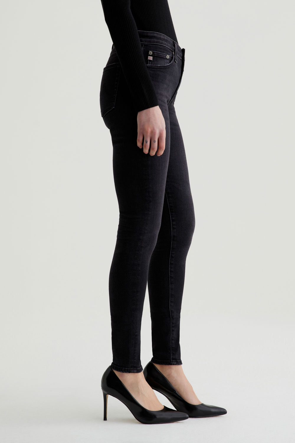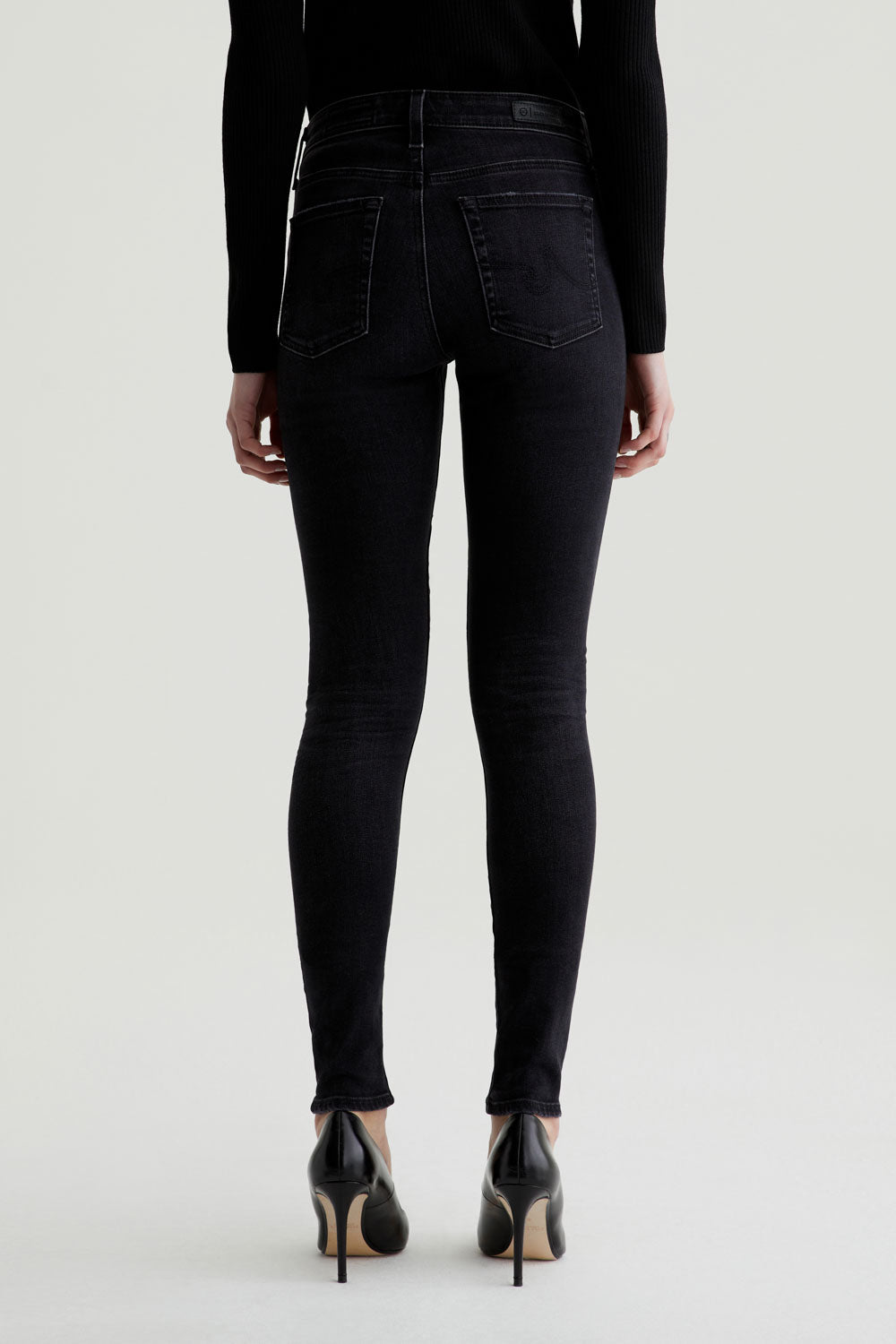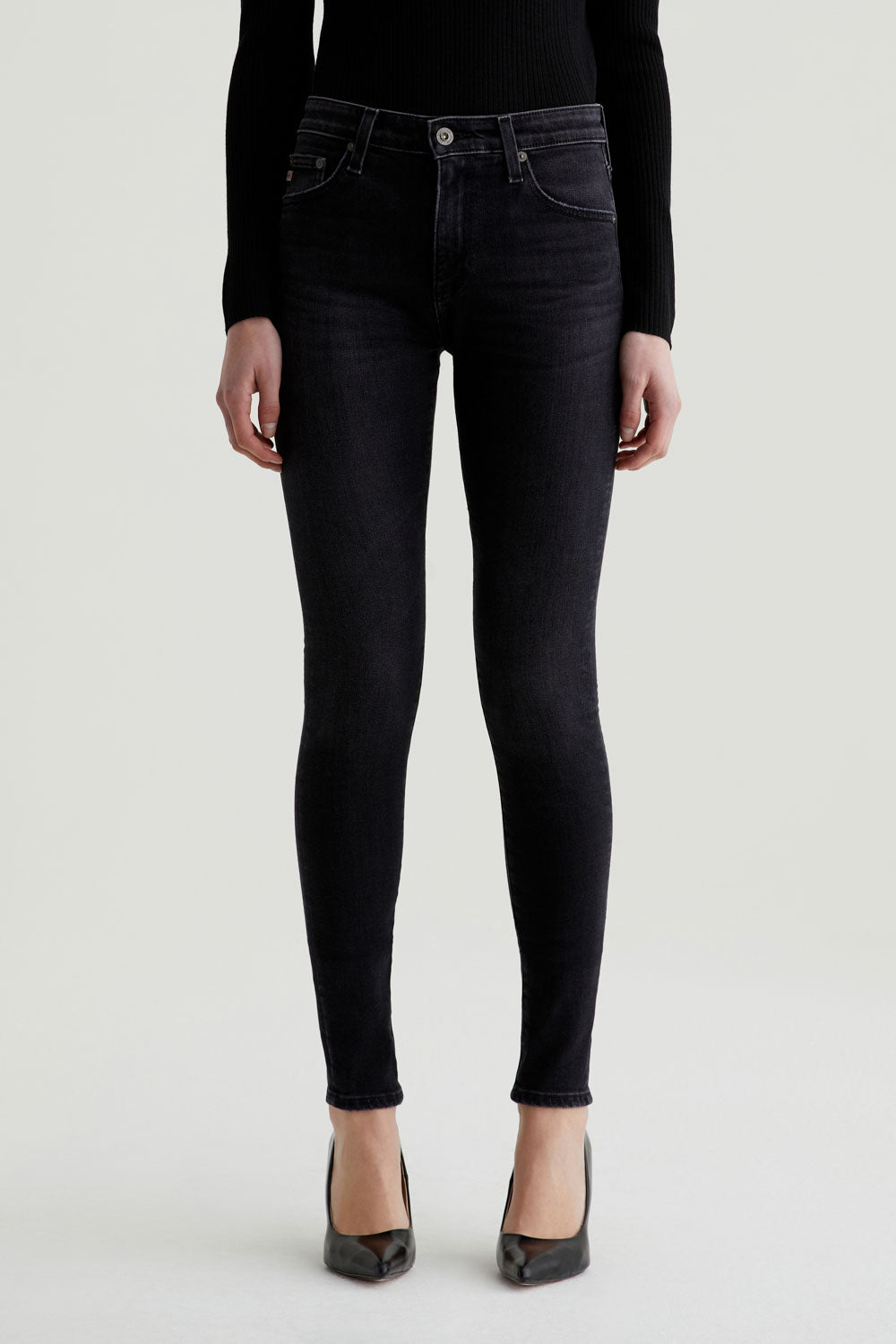 The Farrah Skinny features a mid-rise waist and a sleek full-length silhouette that's fitted from top to bottom. Designed in 12 oz. Universe Stretch Denim, these women's skinny jeans feature an AG-ed™ black wash with subtle fading and a soft, comfortable feel.