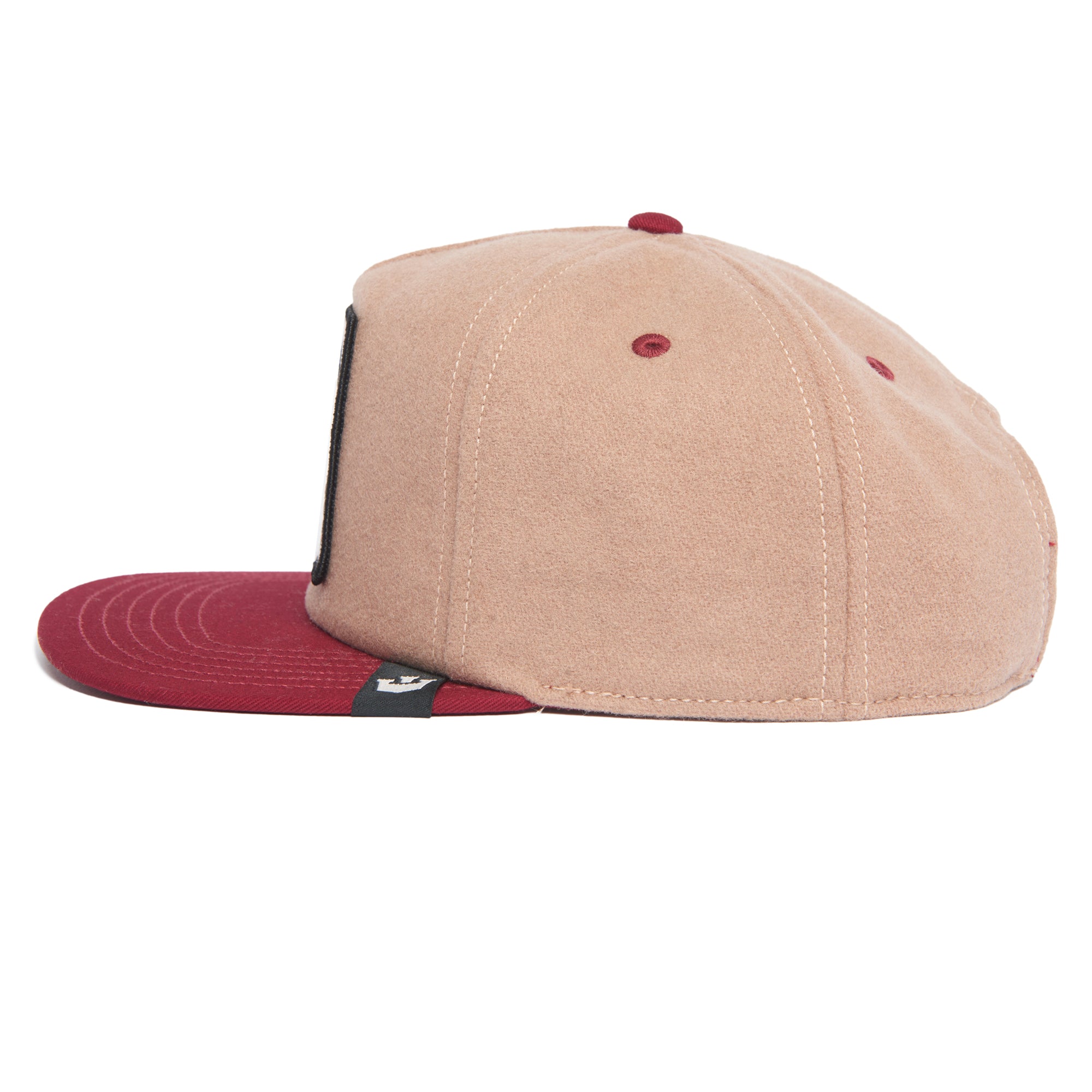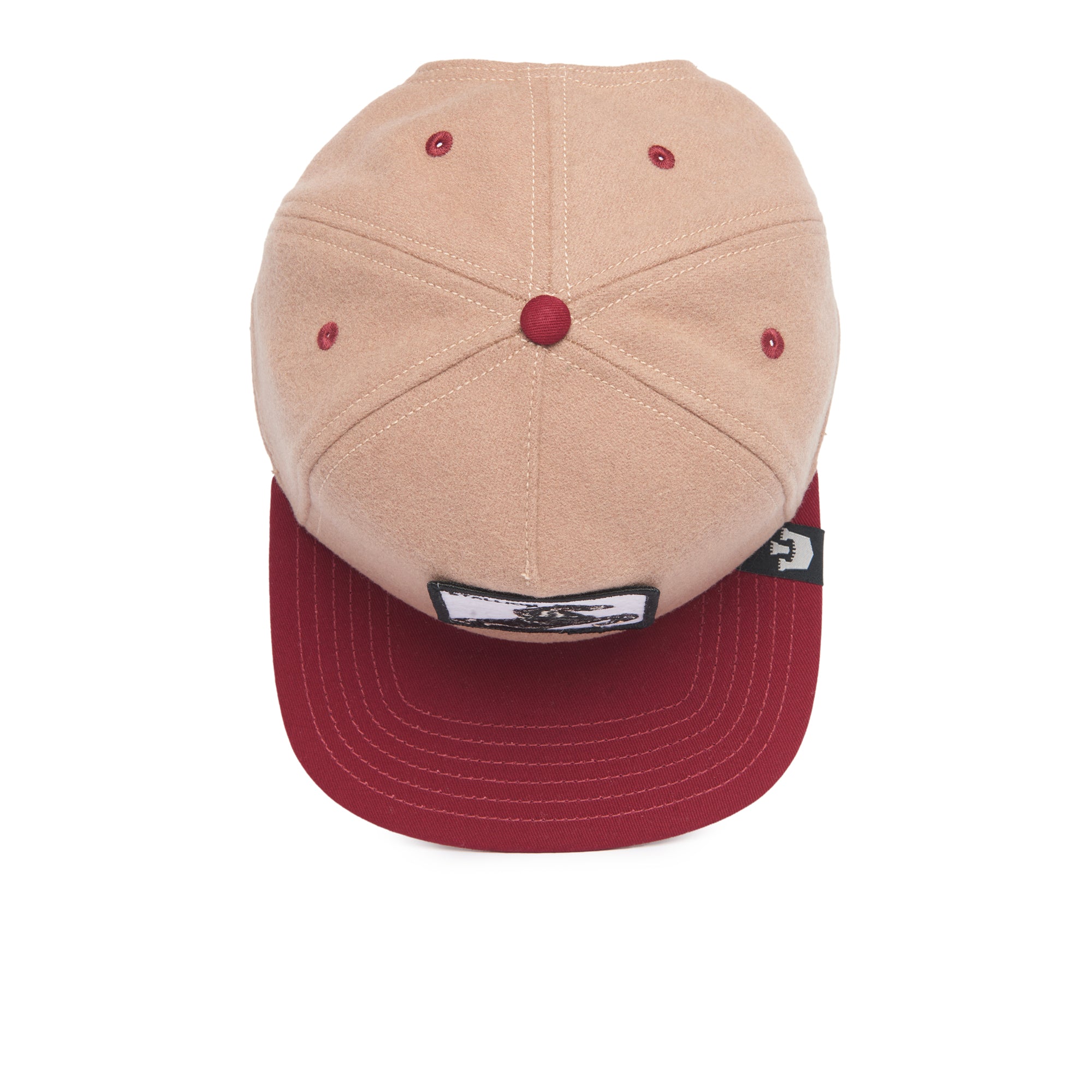 The brown and red Stallion Free Rider The Farm Flats cap from Goorin Bros. is the perfect accessory for any adult looking for a unique and bold touch of style in their outfit. With its unisex design, this snapback cap is ideal for those looking to stand out from the crowd with a touch of elegance and rebellion.