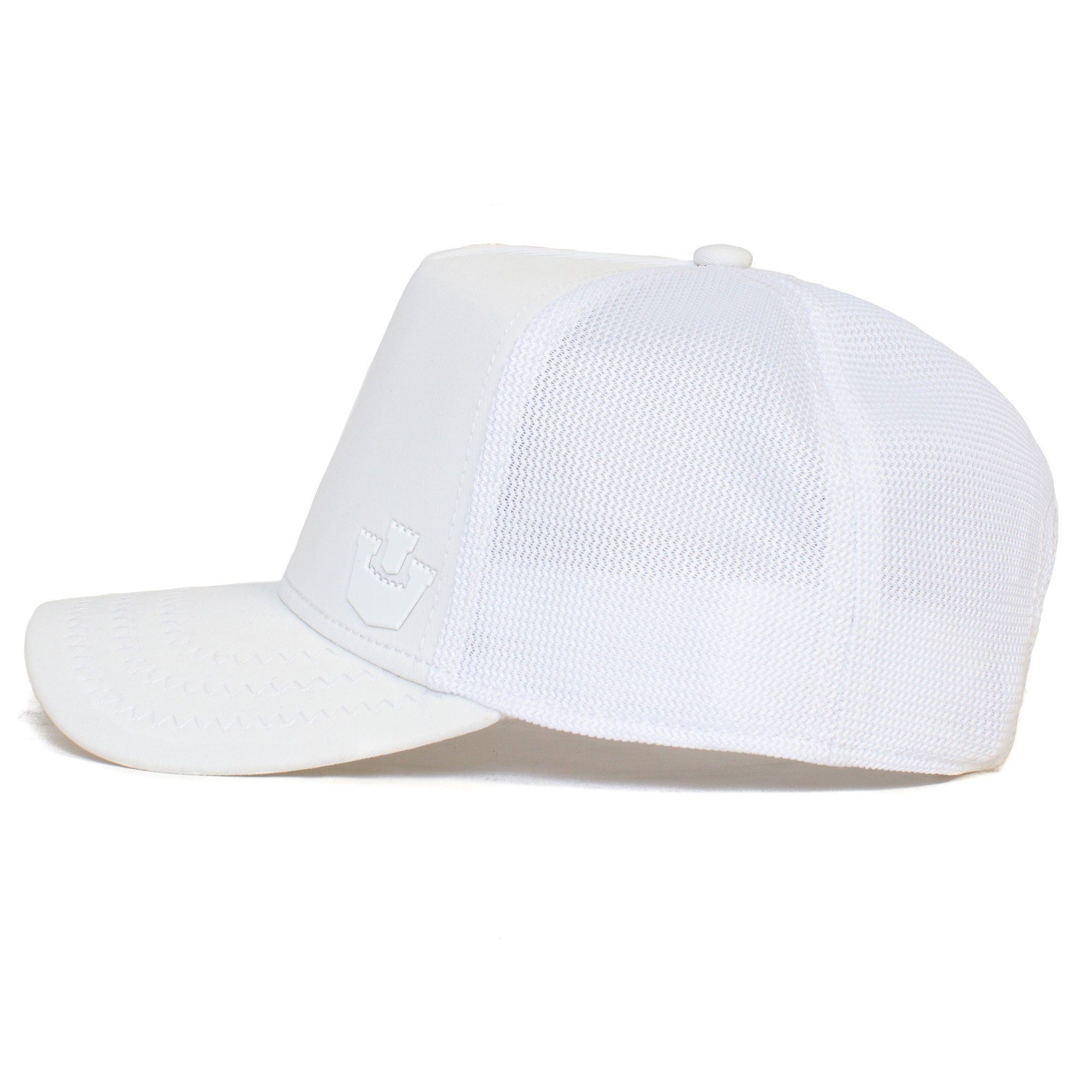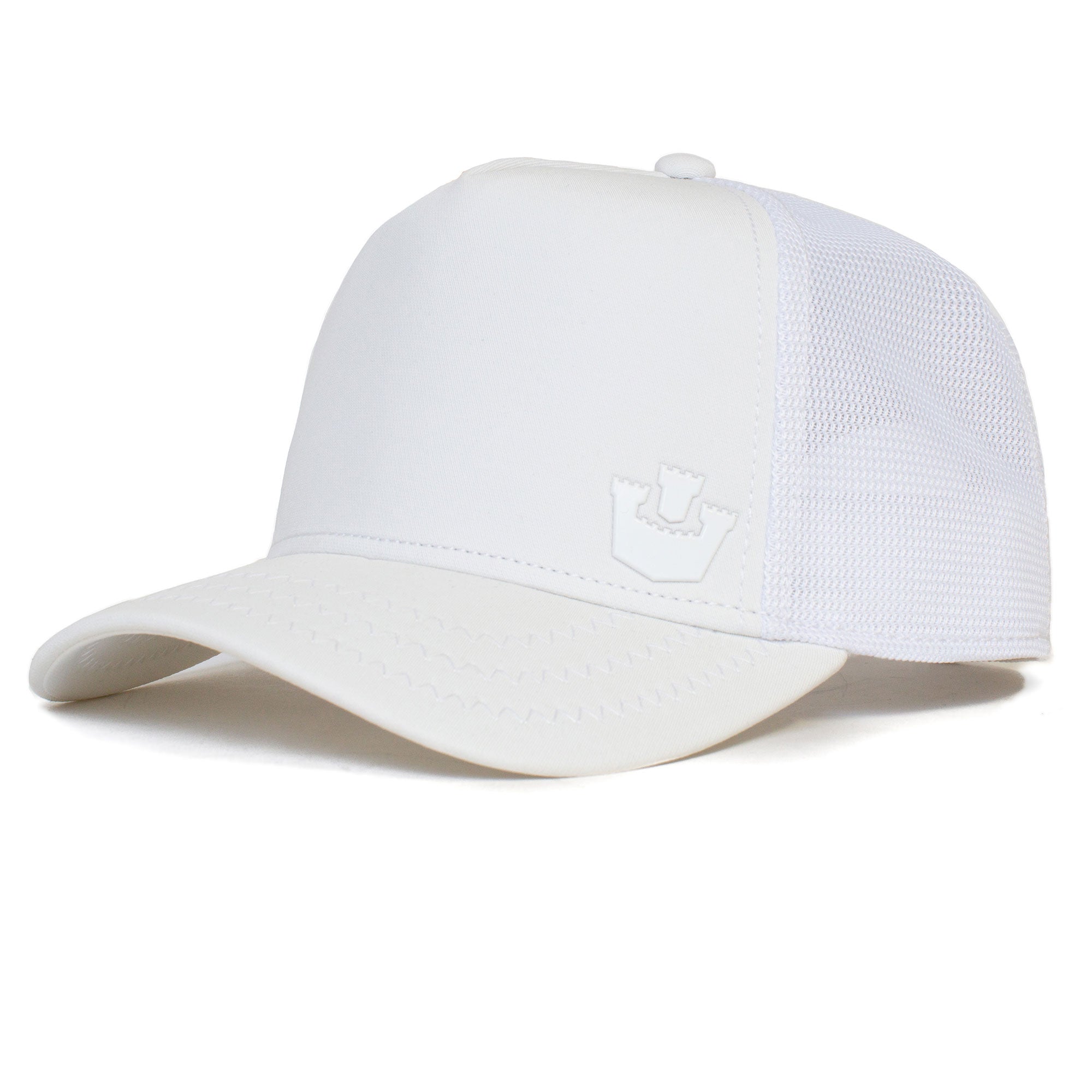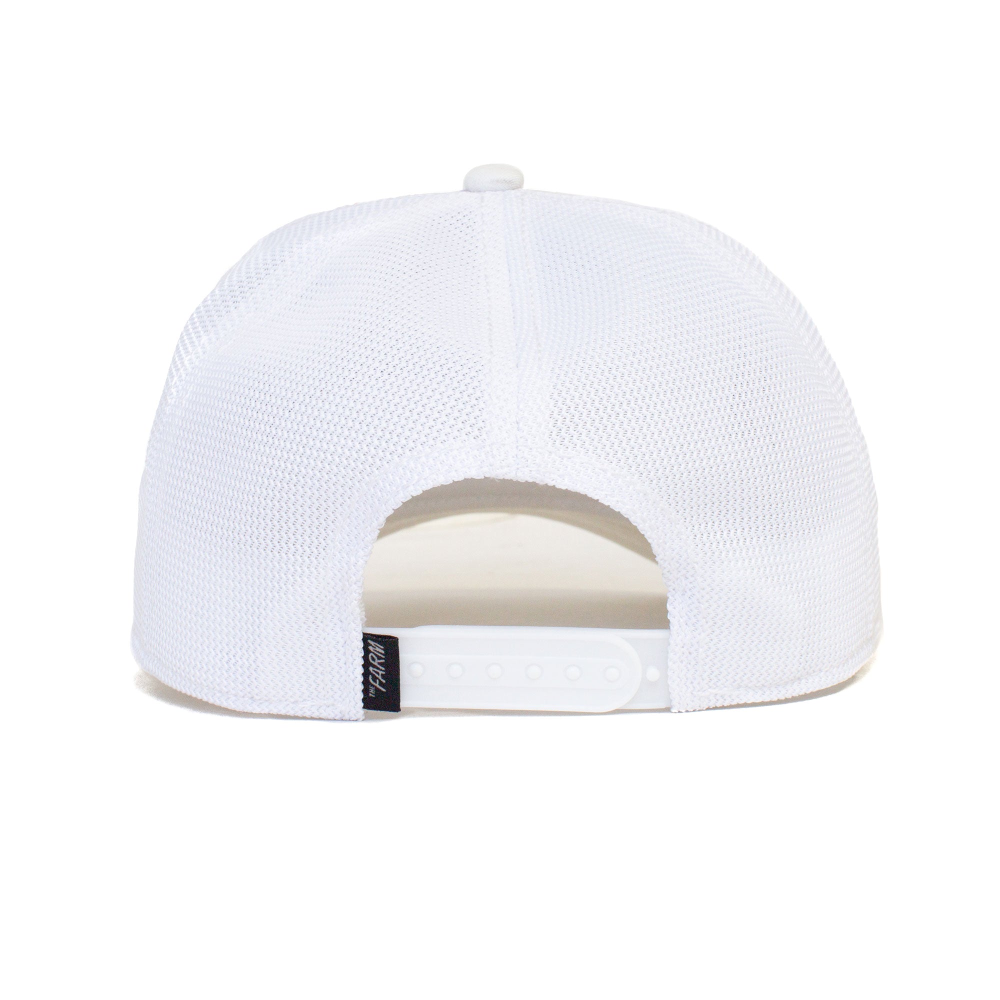 The "Gateway" Goorin cap in white, with its simple and sleek design, is an invigorating addition to any outfit. In classic trucker style with a curved visor and snapback closure, it creates a unique, laid-back look. The subtle Goorin Bros label on the visor and the farm label on the closure emphasize its casual appeal. This Goorin cap is perfect for anyone who prefers a flexible style.