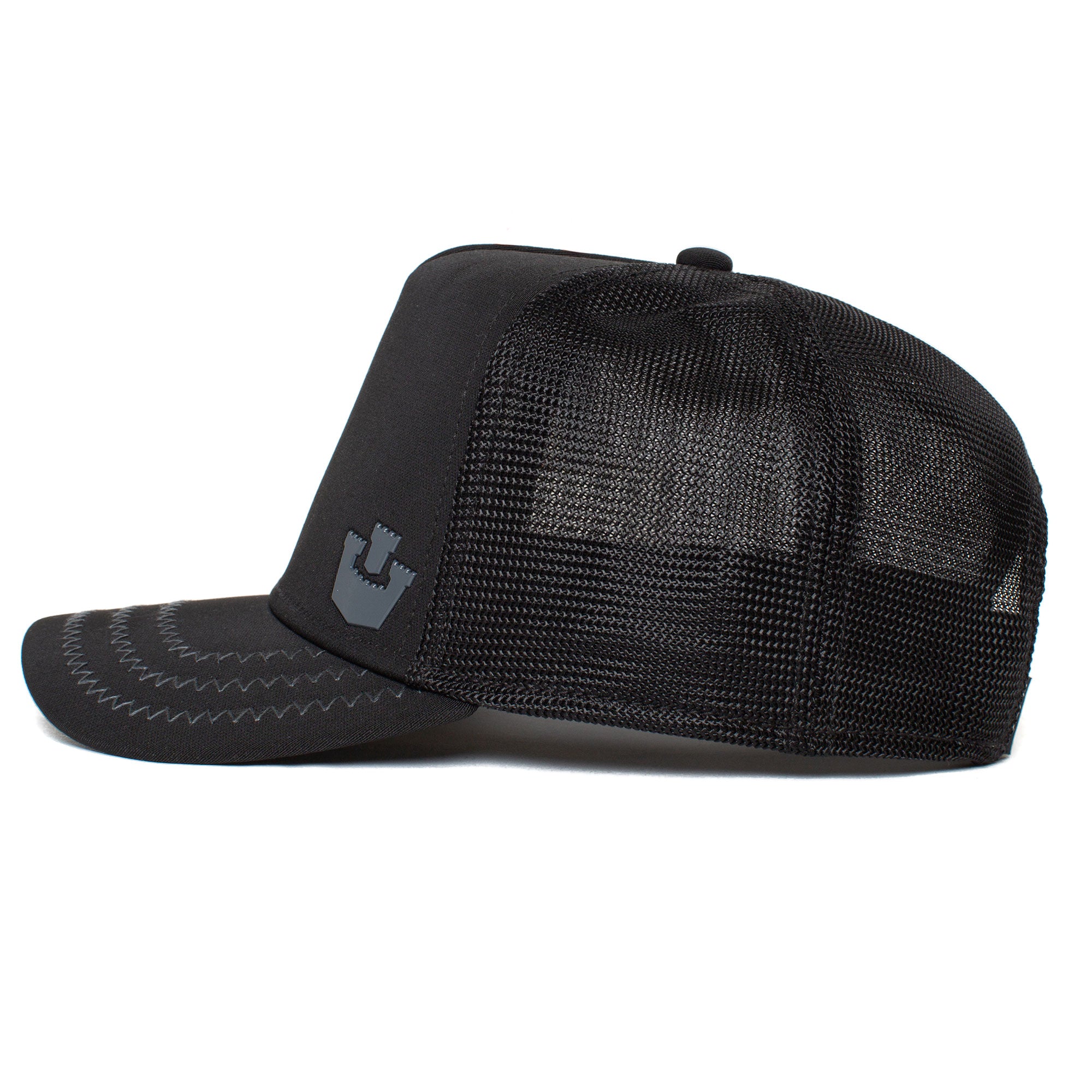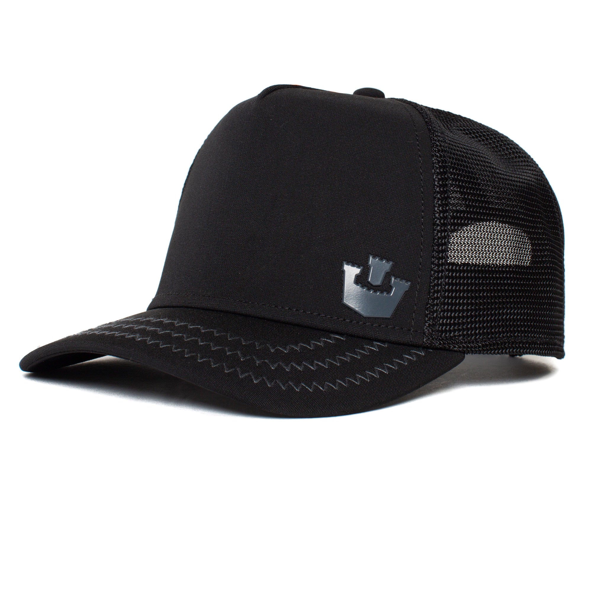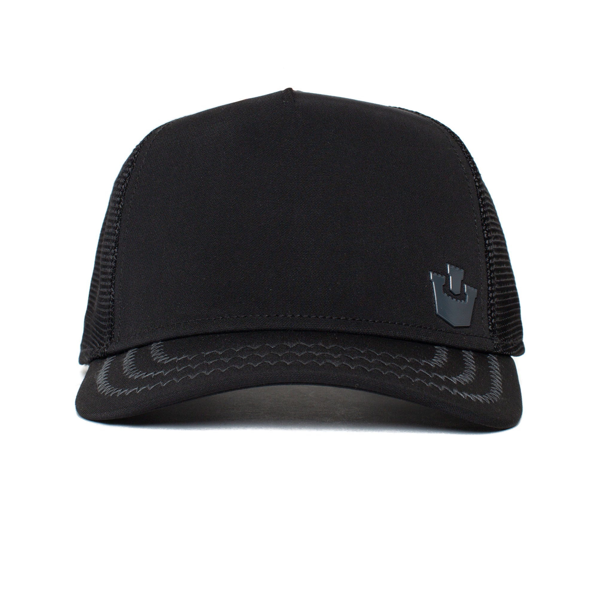 The "Gateway" Goorin cap in black, with its simple and sleek design, is an invigorating addition to any outfit. In classic trucker style with a curved visor and snapback closure, it creates a unique, laid-back look. The subtle Goorin Bros label on the visor and the farm label on the closure emphasize its casual appeal. This Goorin cap is perfect for anyone who prefers a flexible style.