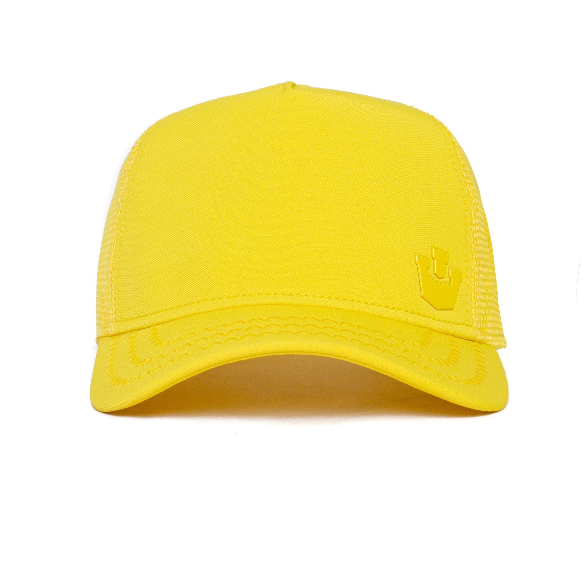 The "Gateway" Goorin cap in yellow, with its simple and sleek design, is an invigorating addition to any outfit. In classic trucker style with a curved visor and snapback closure, it creates a unique, laid-back look. The subtle Goorin Bros label on the visor and the farm label on the closure emphasize its casual appeal. This Goorin cap is perfect for anyone who prefers a cheerful and flexible style.