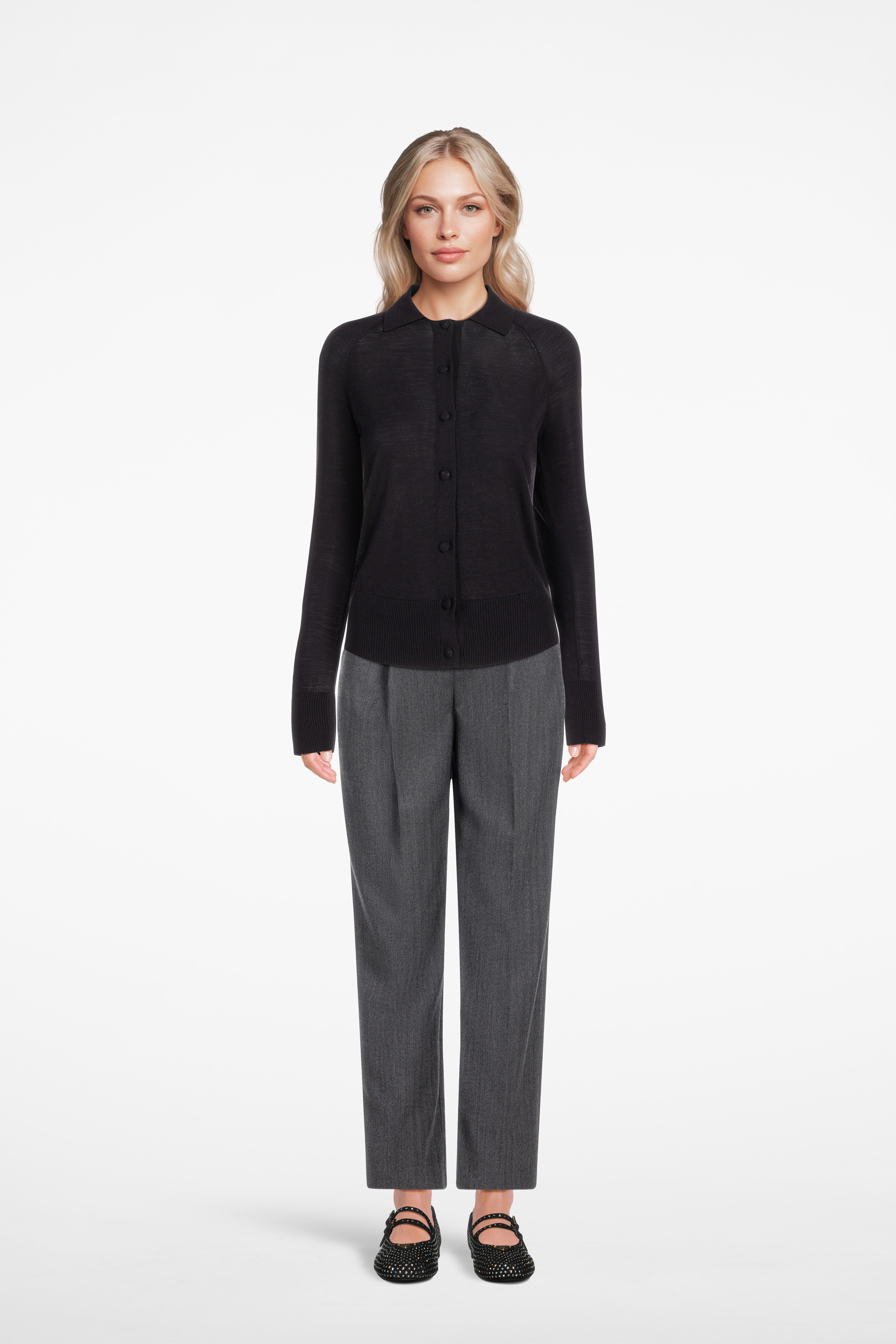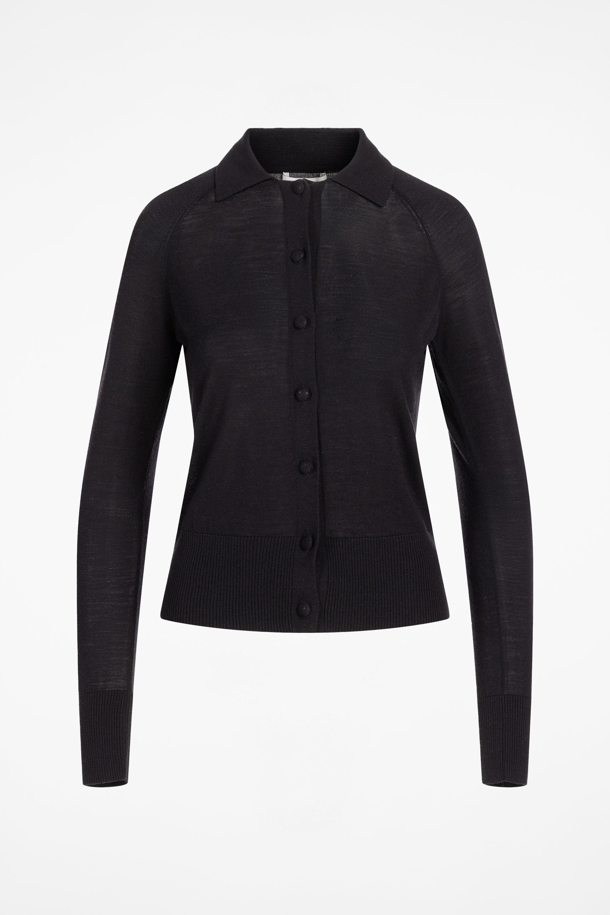 The Gela Cardigan is crafted in fine-gauge wool for lightweight warmth. Raglan sleeves, tonal self-covered buttons and ribbed trims hold shape.