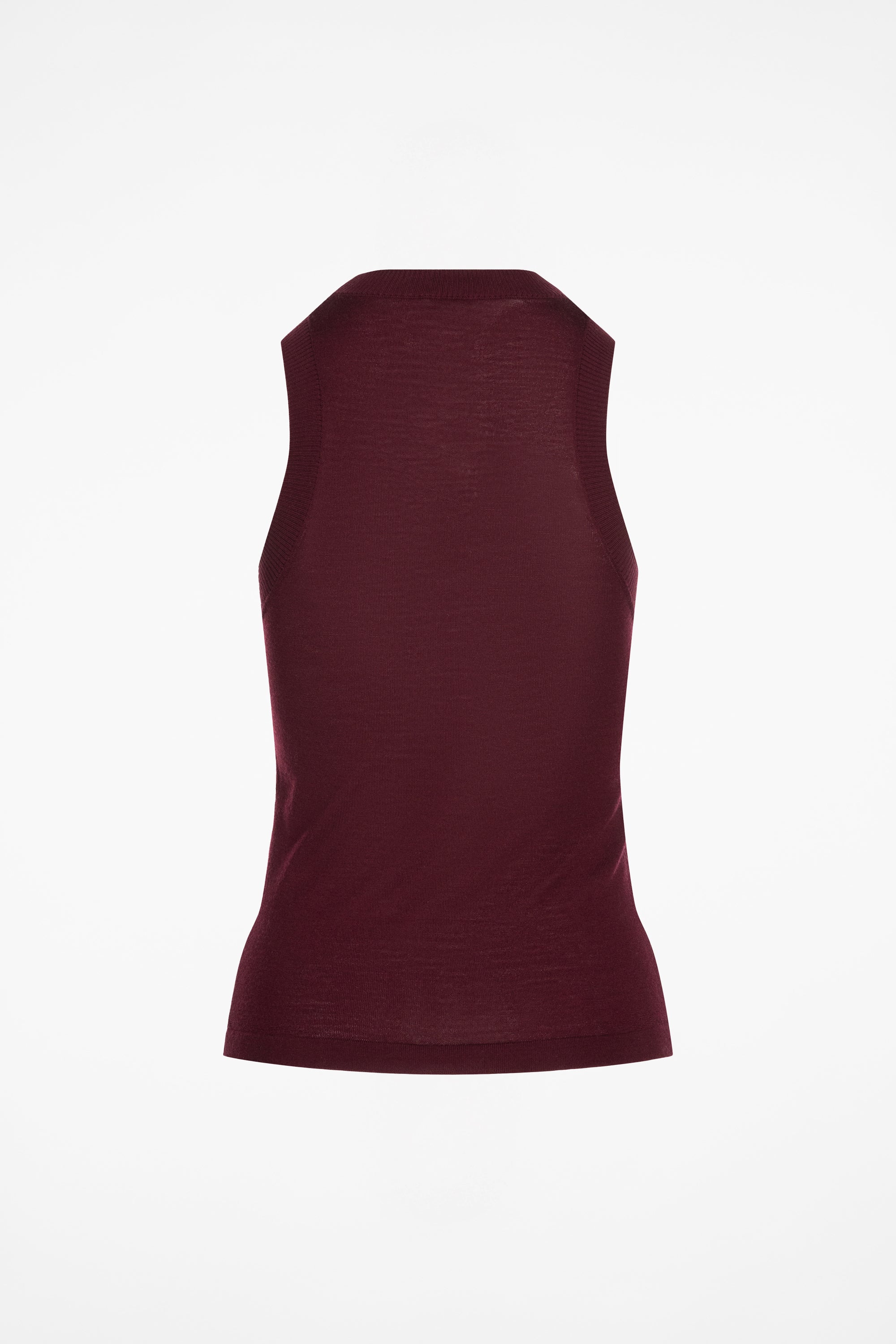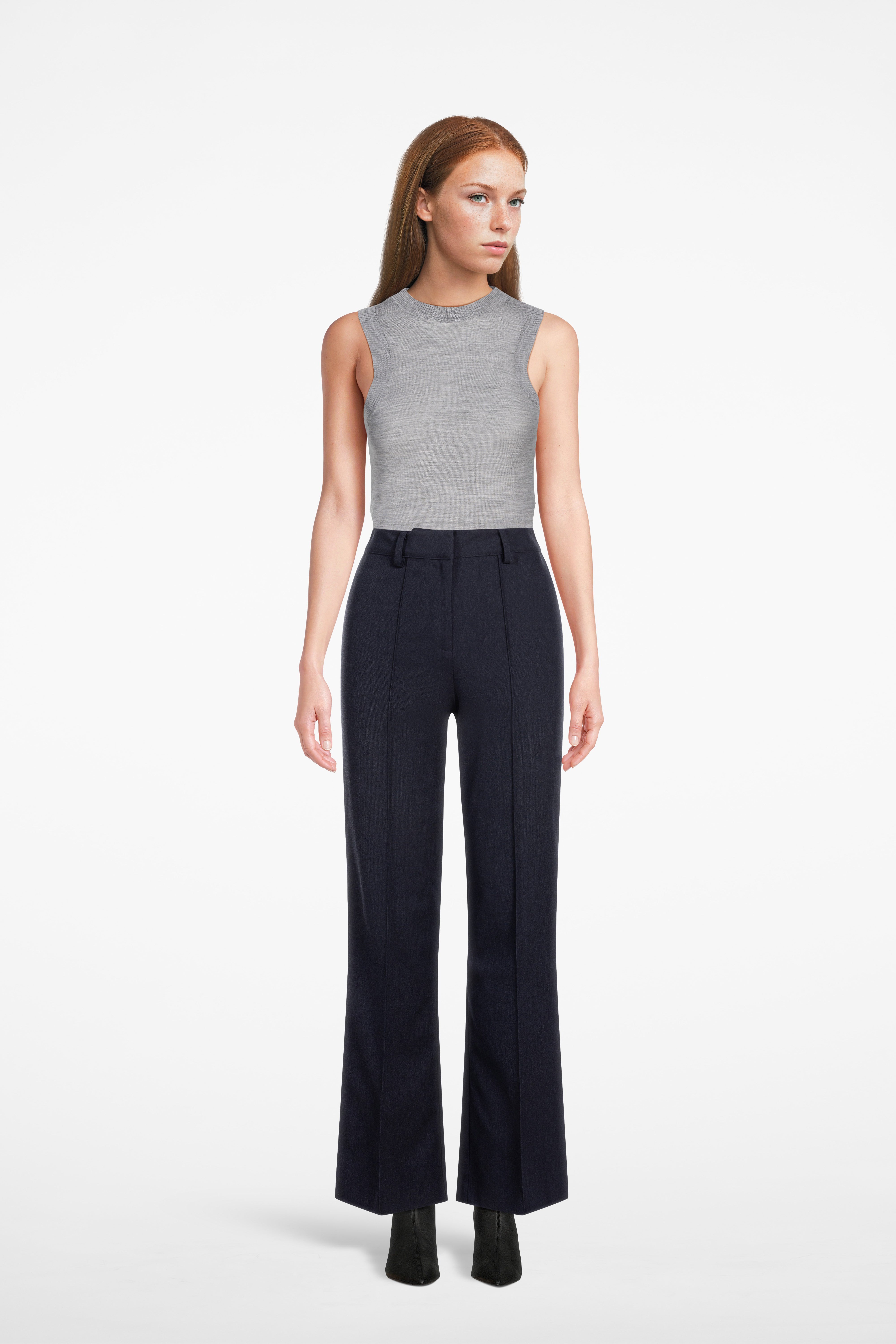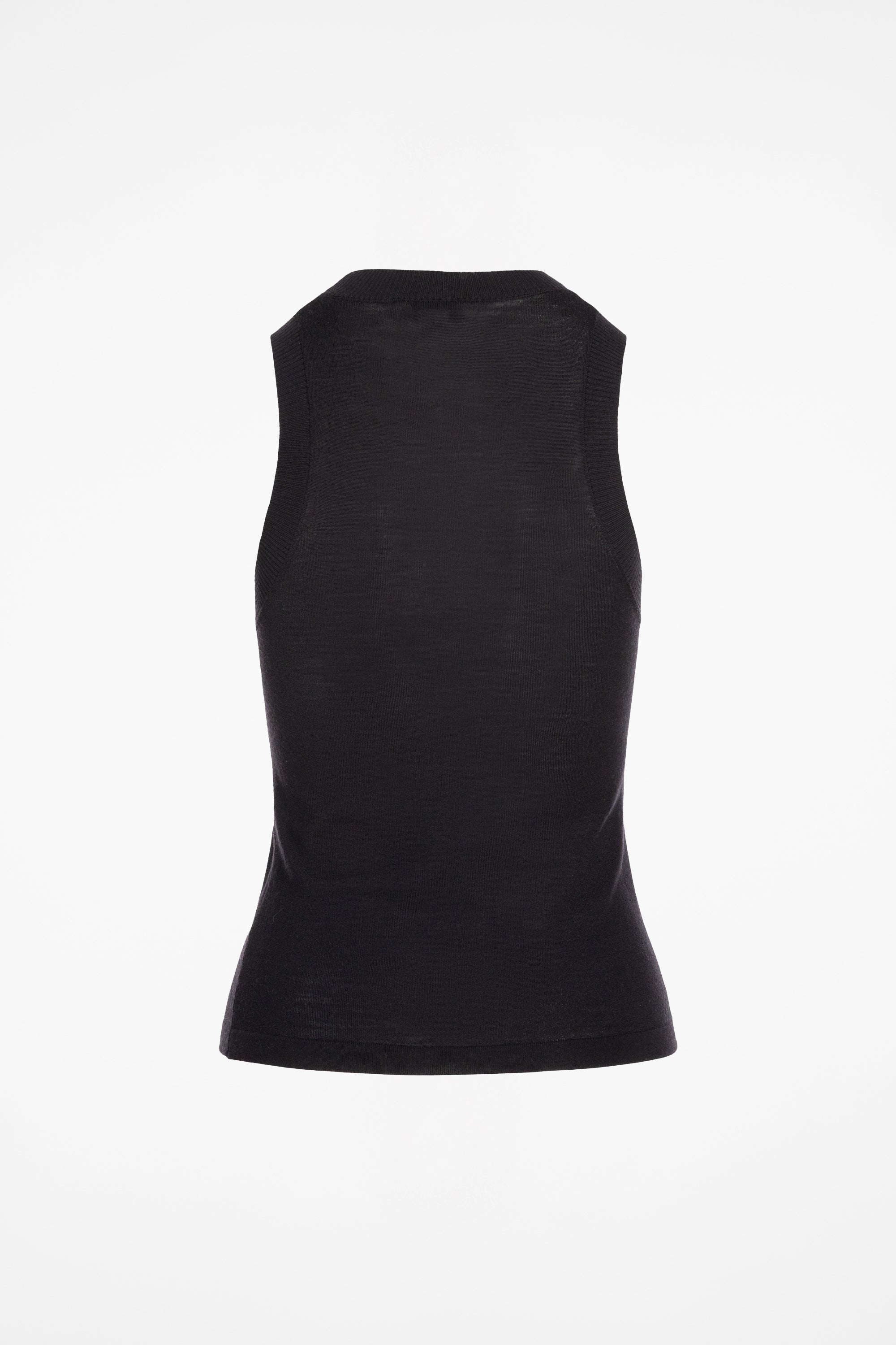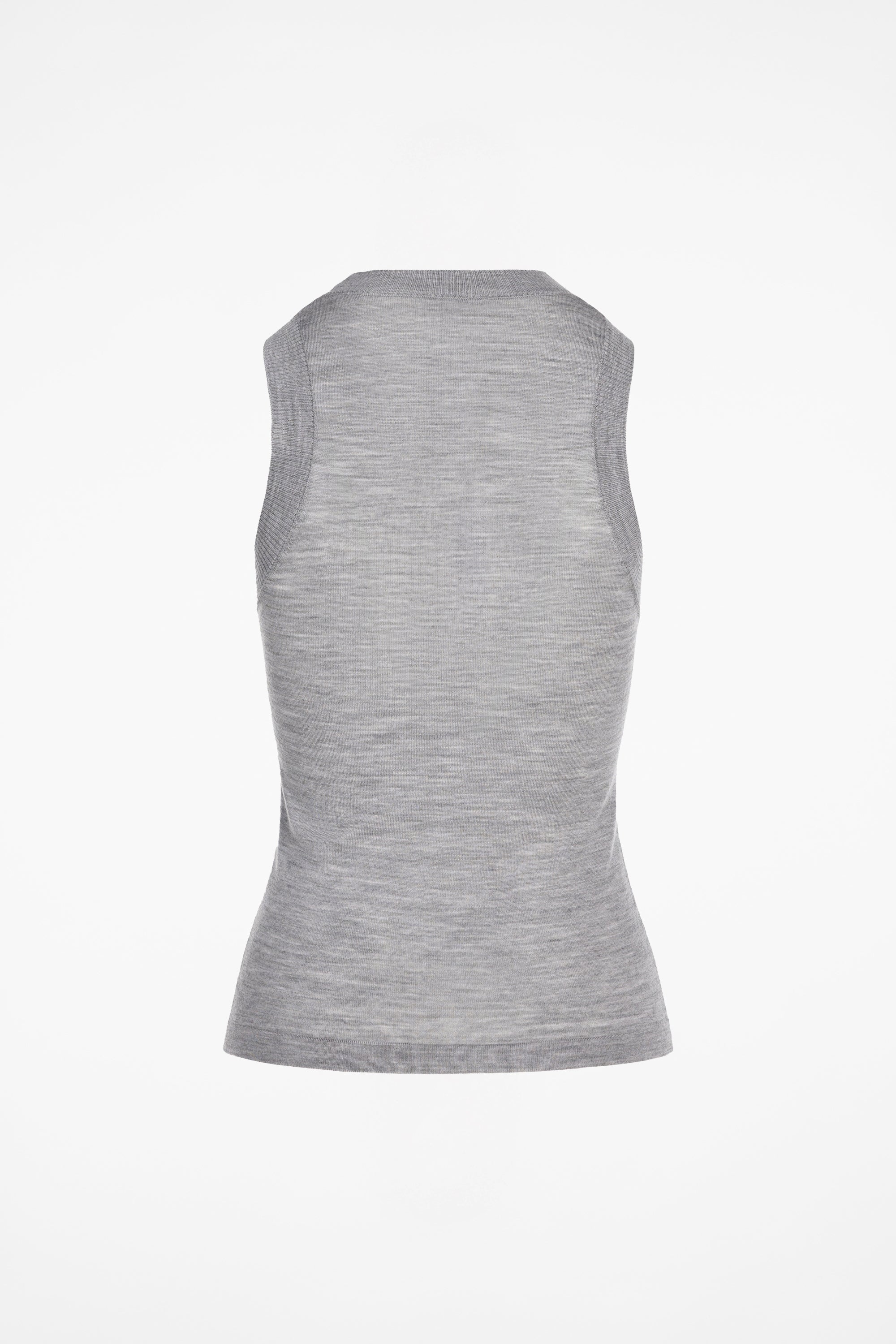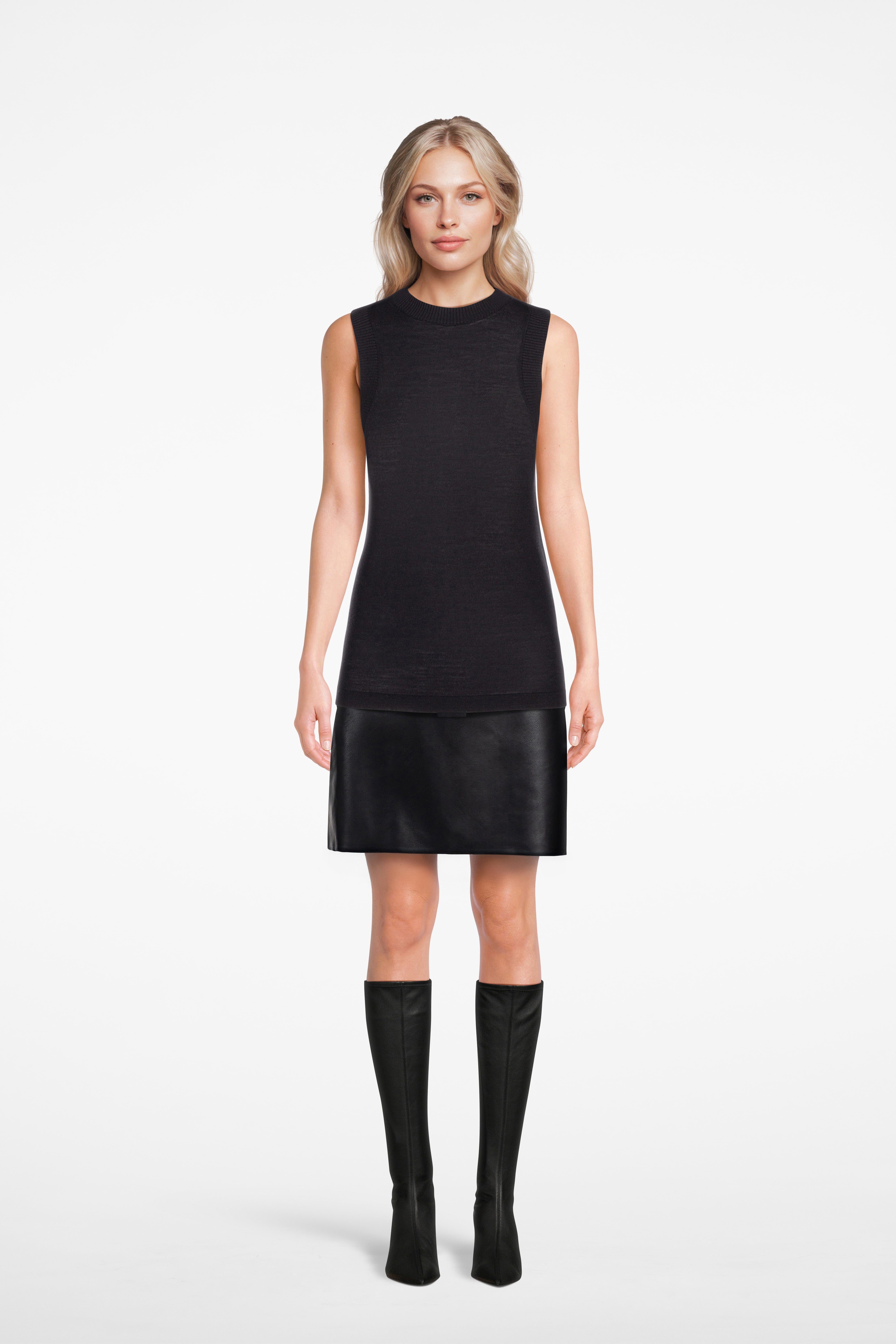 The Gela Sleeveless Crew is a high-neck sleeveless knit top crafted from fine-gauge wool for a soft, breathable feel. Streamlined silhouette with ribbed finishes.