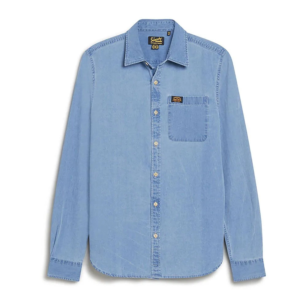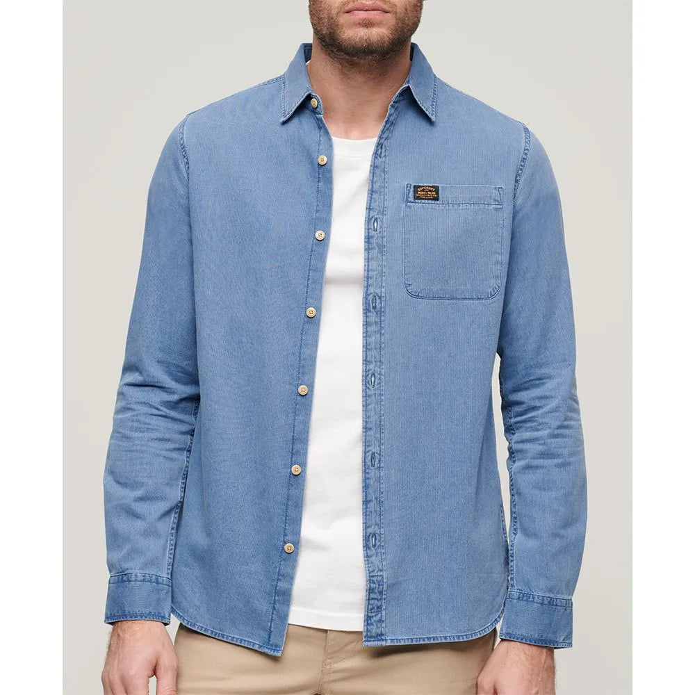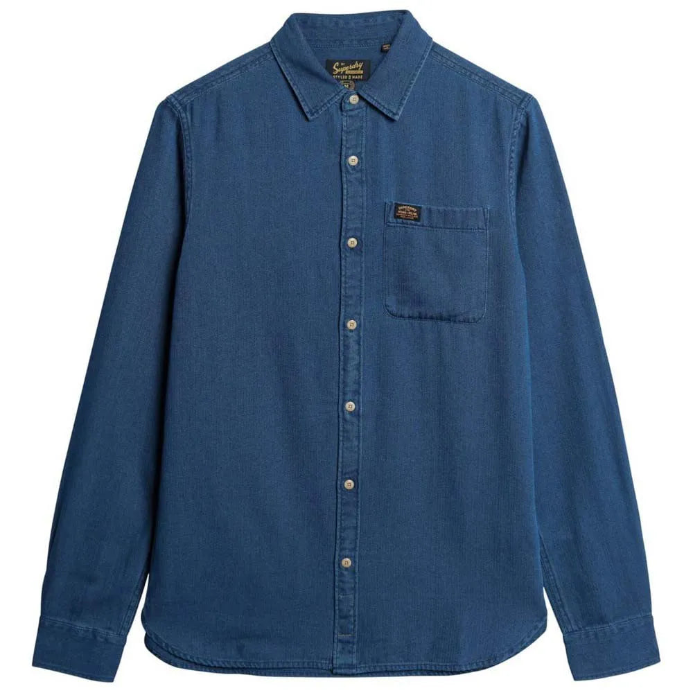 A refined yet rustic long-sleeve denim shirt for an authentic, relaxed look — easy to layer or wear solo.