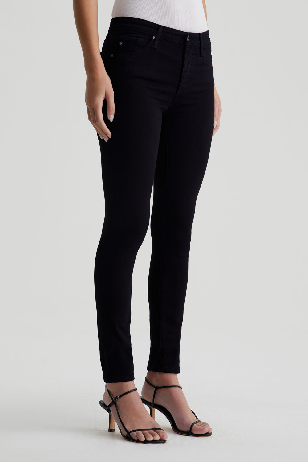 Prima is a mid-rise cigarette jean featuring a saturated black shade and tonal details. This jean has a fitted silhouette through the hips and slight tapering at the leg, designed in 10 oz. Superior Stretch Black Denim.