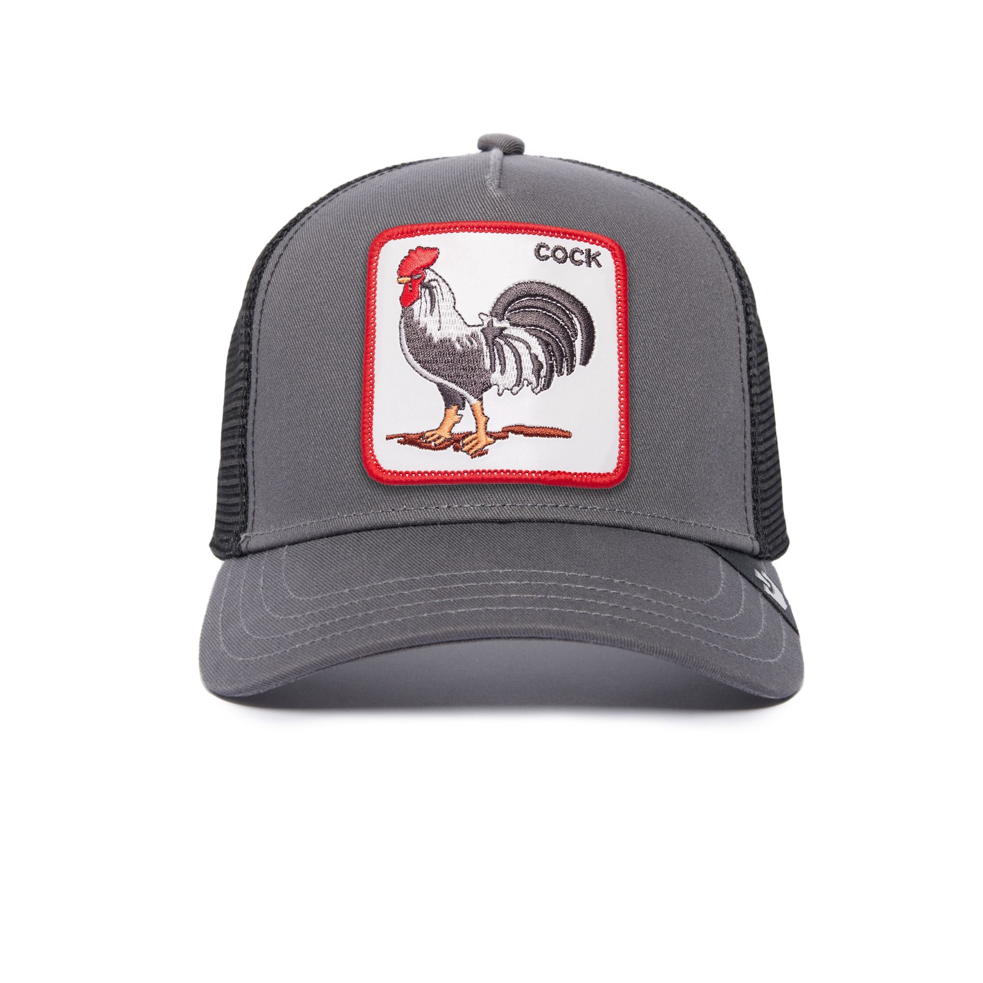 The Goorin Bros. “The Cock” Trucker Hat in grey is an iconic staple, instantly recognizable by its bold embroidered rooster patch and red “COCK” label. Designed with a structured front panel and breathable mesh back, it combines playful personality with classic urban style. The adjustable snapback closure ensures a secure and comfortable fit for everyday wear.