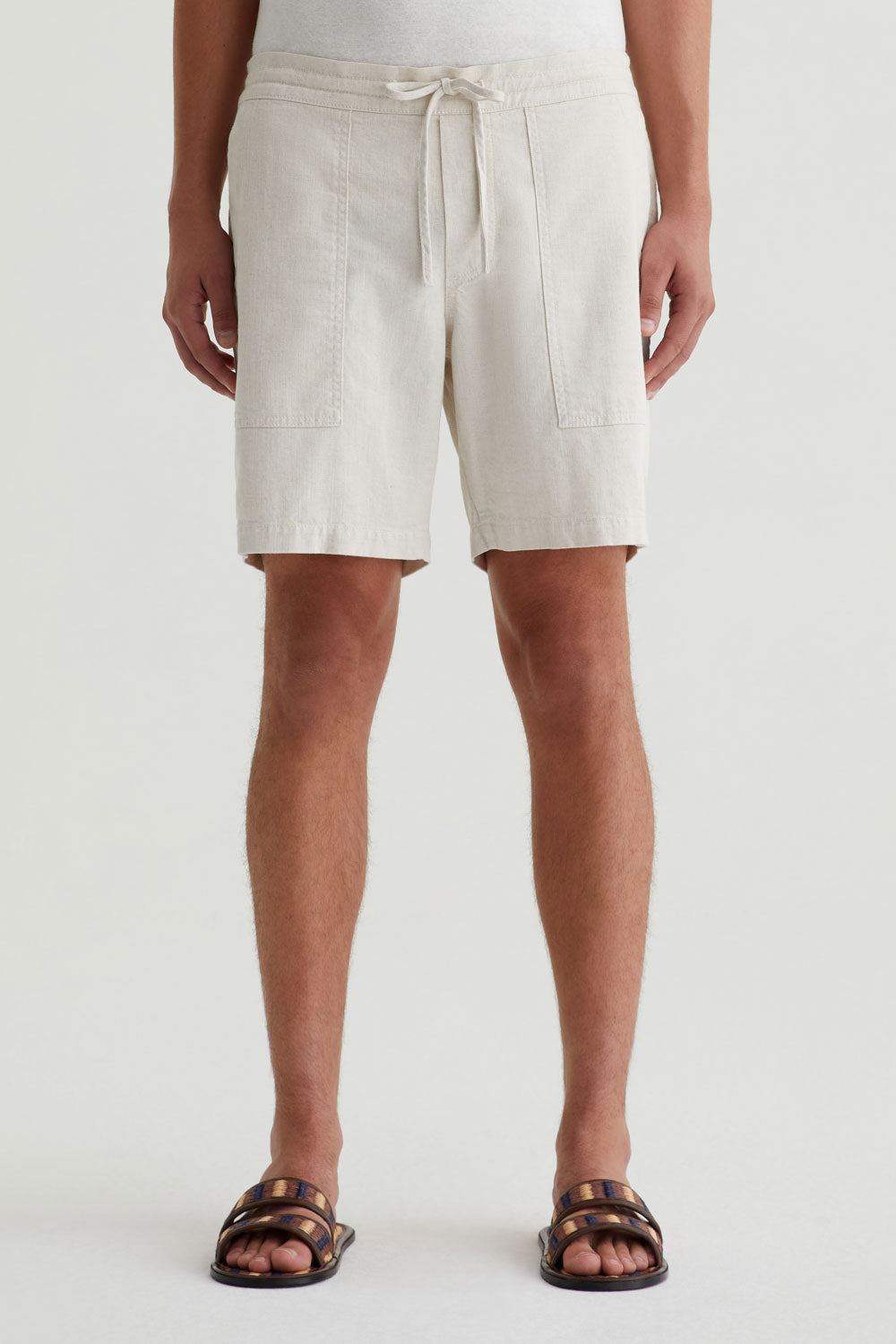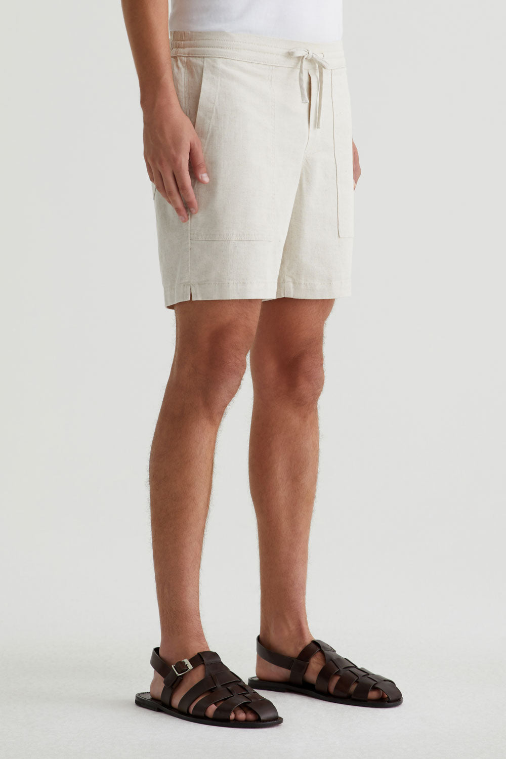 Our Wells Drawstring Short features a lounge-ready relaxed fit with fatigue front pockets and a partially elasticized waistband. Crafted from linen-blend stretch twill, this pull-on pair is lightweight and naturally breathable for comfortable warm-weather style. Buttoned flap pockets at the back complete the look.
