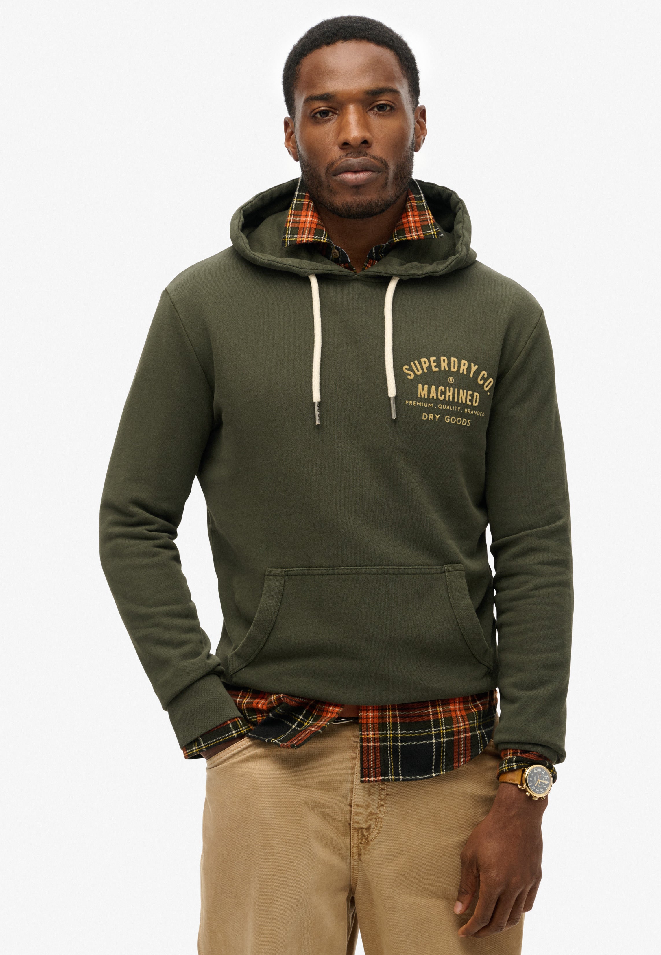 Heritage-inspired workwear print on a comfy overhead hoodie — nearly a century of style made soft.